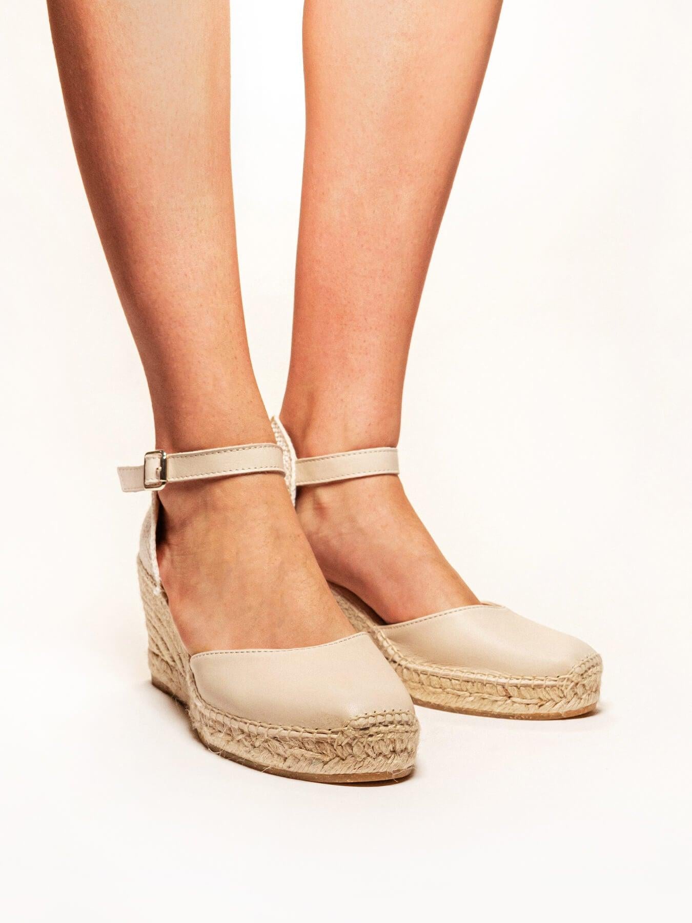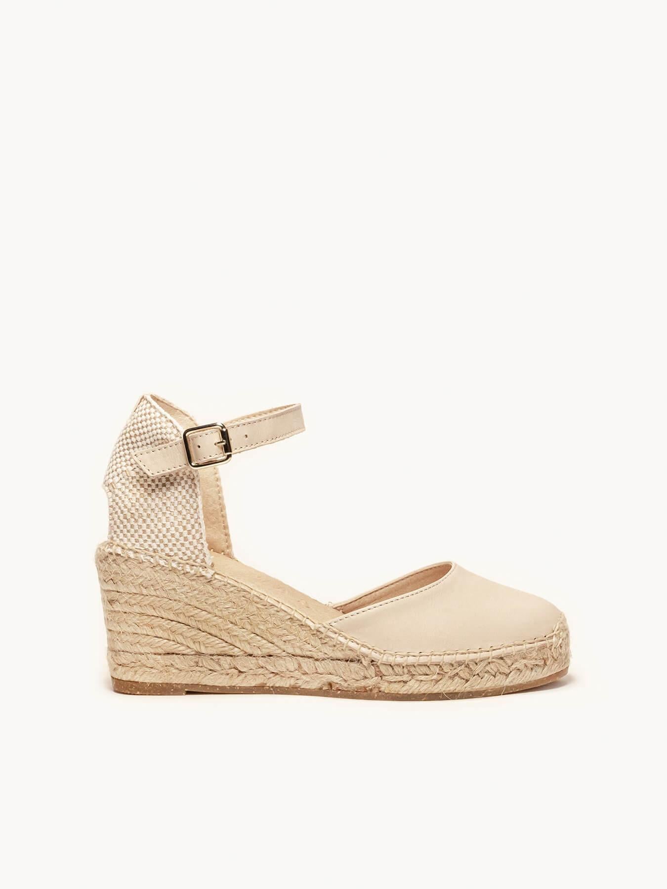 La alpargata de cuña media Marga, es una de nuestras favoritas. Una alpargata con pulsera y escote redondo es un modelo muy versátil, ideal para el día a día y también para darle un toque muy chic a los looks más especiales. Las alpargatas con cuña y pulsera se sujetan muy bien al tobillo, irás súper cómoda durante todo el día.