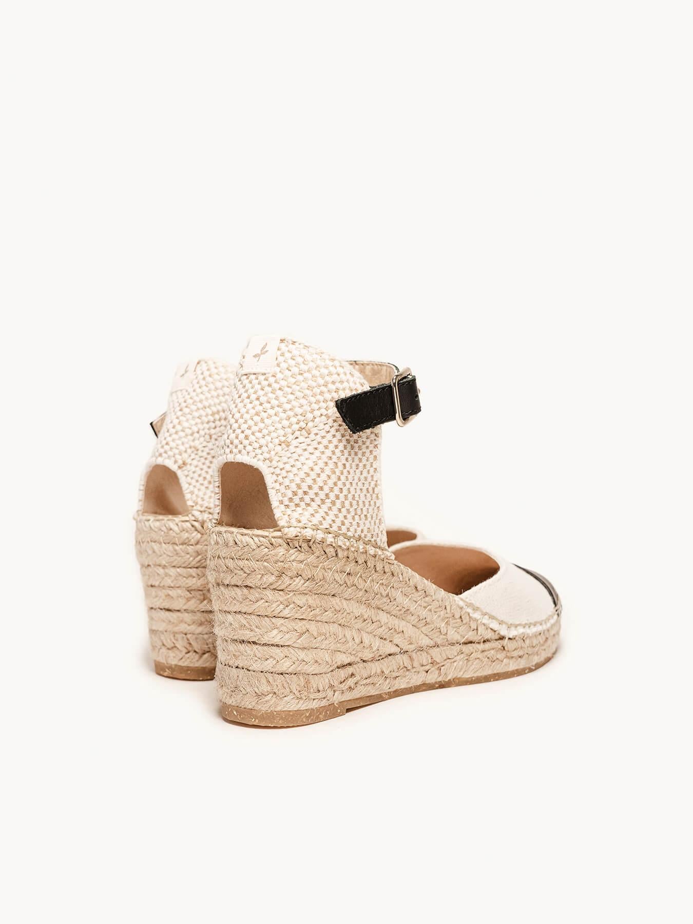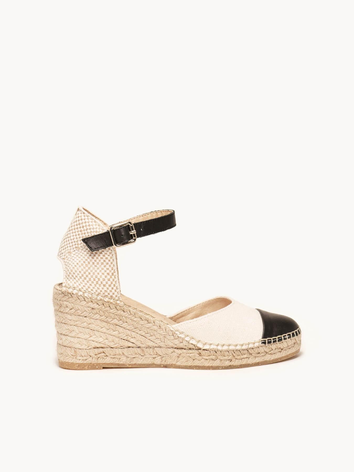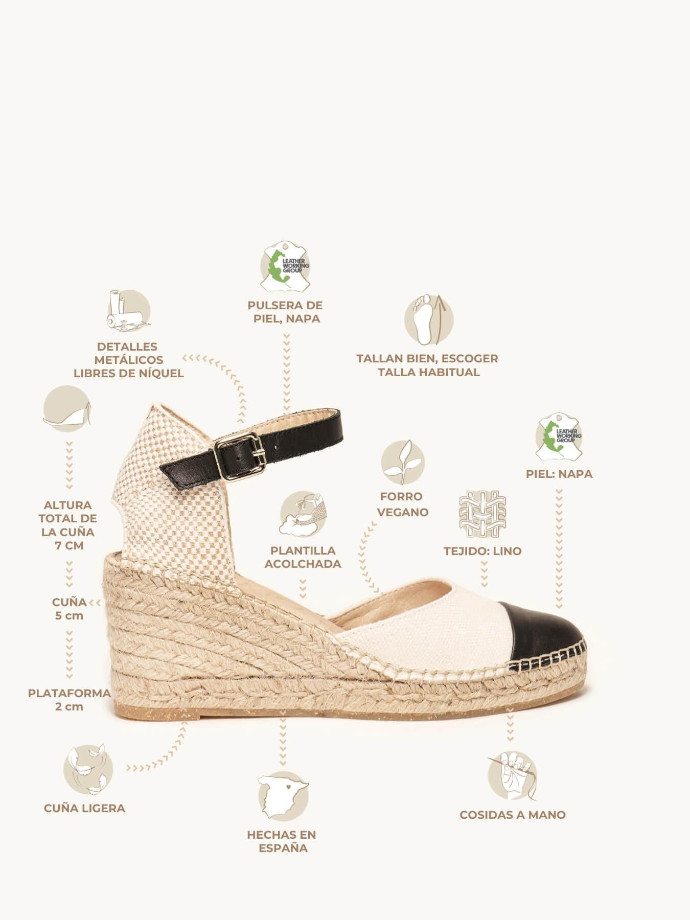 La alpargata de cuña media Marga es una de nuestras favoritas. Una alpargata con pulsera y escote redondo es un modelo muy versátil, ideal para el día a día y también para darle un toque muy chic a los looks más especiales. Las alpargatas con cuña y pulsera se sujetan muy bien al tobillo, irás súper cómoda durante todo el día.