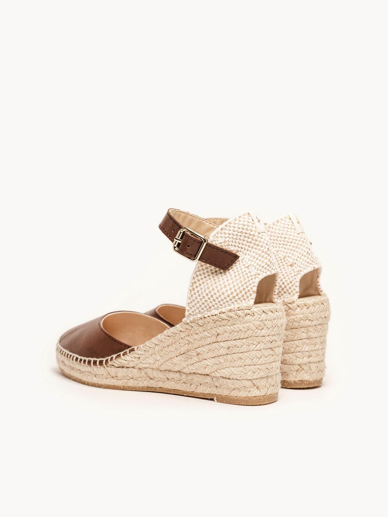 - Cuña de trenza de yute natural con suela de goma reciclada mezclada con fibras naturales