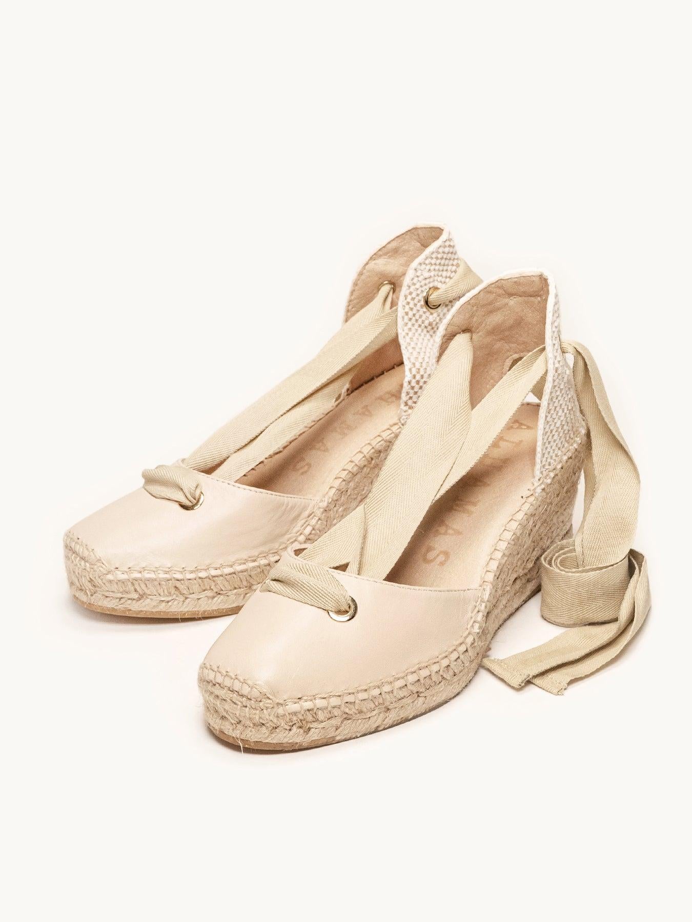 La alpargata de cuña media Melisa, es unos de nuestros modelos más tradicionales. Nuestra alpargata con cintas y escote redondo es un modelo muy versátil, ideal para el día a día y también para darle un toque muy chic a los looks más especiales. Podrás darle un toque especial porque las cintas se pueden cambiar.