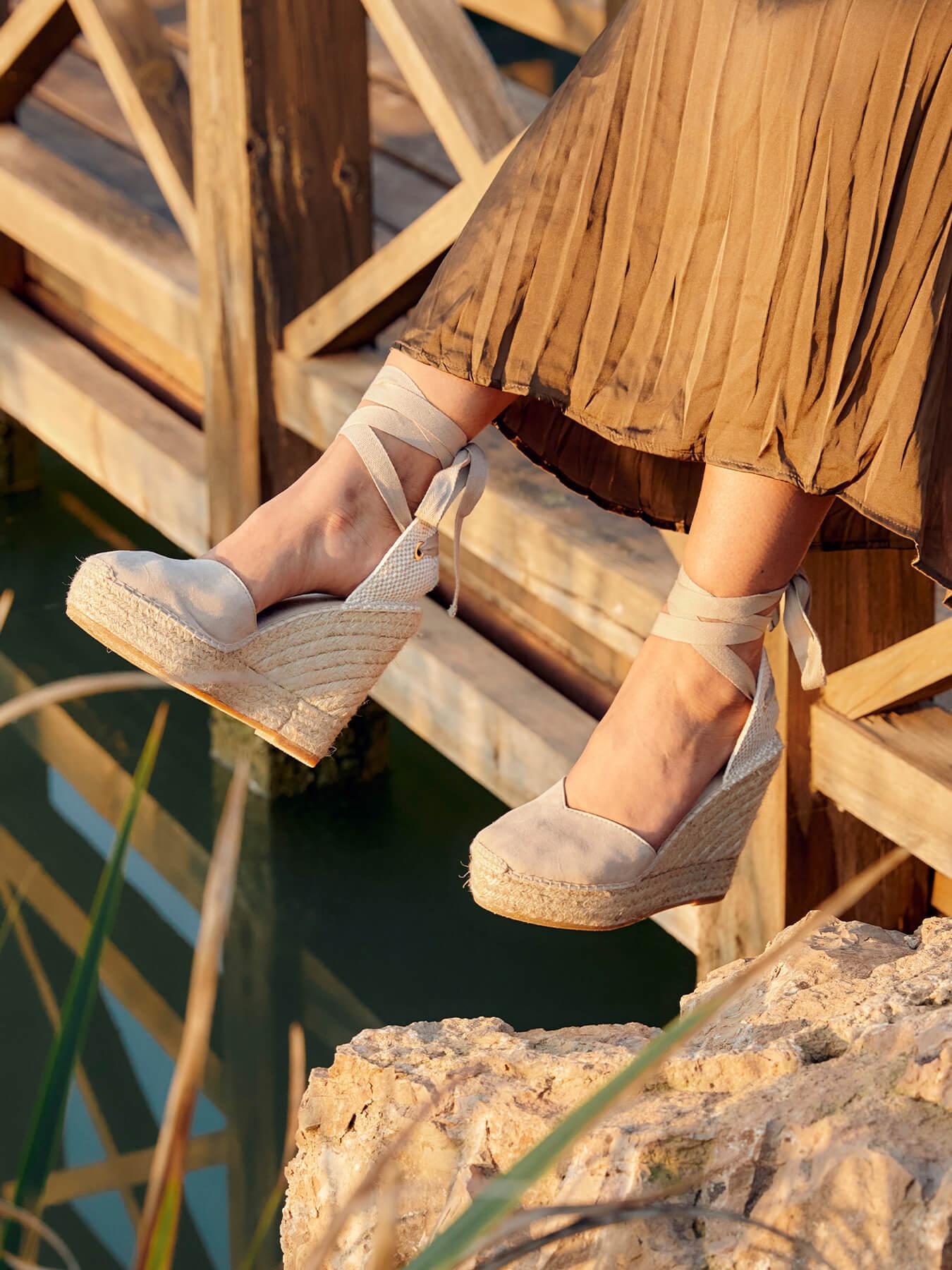 La alpargata de cuña alta Romero, es nuestro modelo más icónico. Una alpargata valenciana de escote corazón con cintas que podrás llevar con tus looks especiales y también con los del día a día. Podrás darle un toque especial porque las cintas se pueden cambiar.
