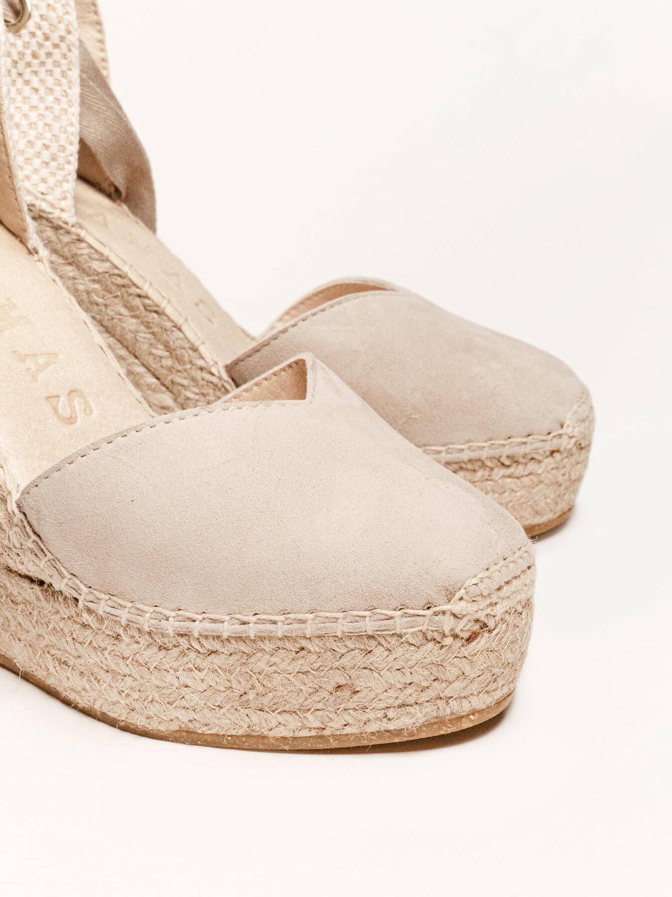 - Cuña de trenza de Yute natural con suela de goma reciclada mezclada con fibras naturales.