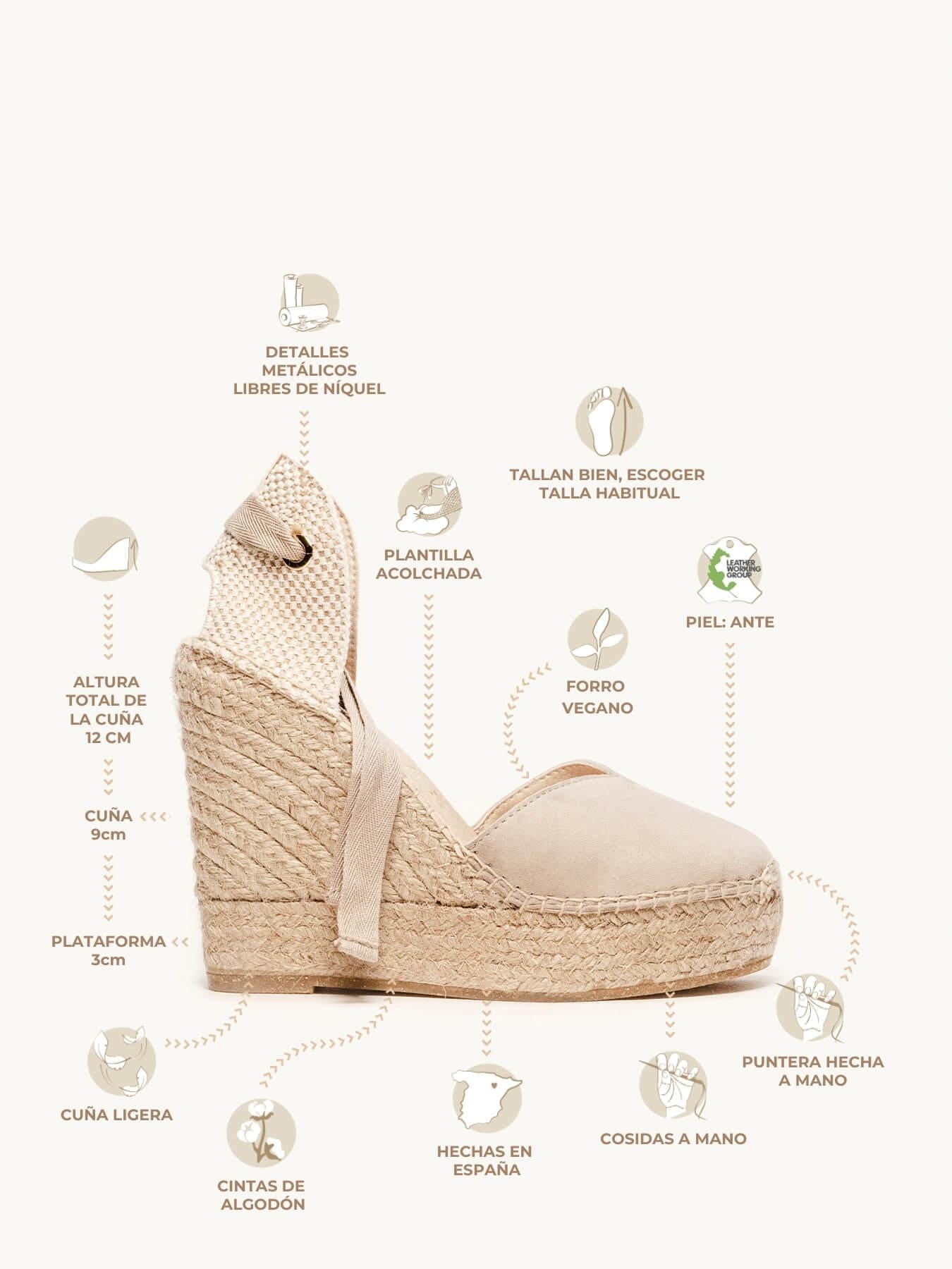 Alpargata Cuña Alta: 12 cm totales (8,5 de plataforma + 3,5 de cuña).
