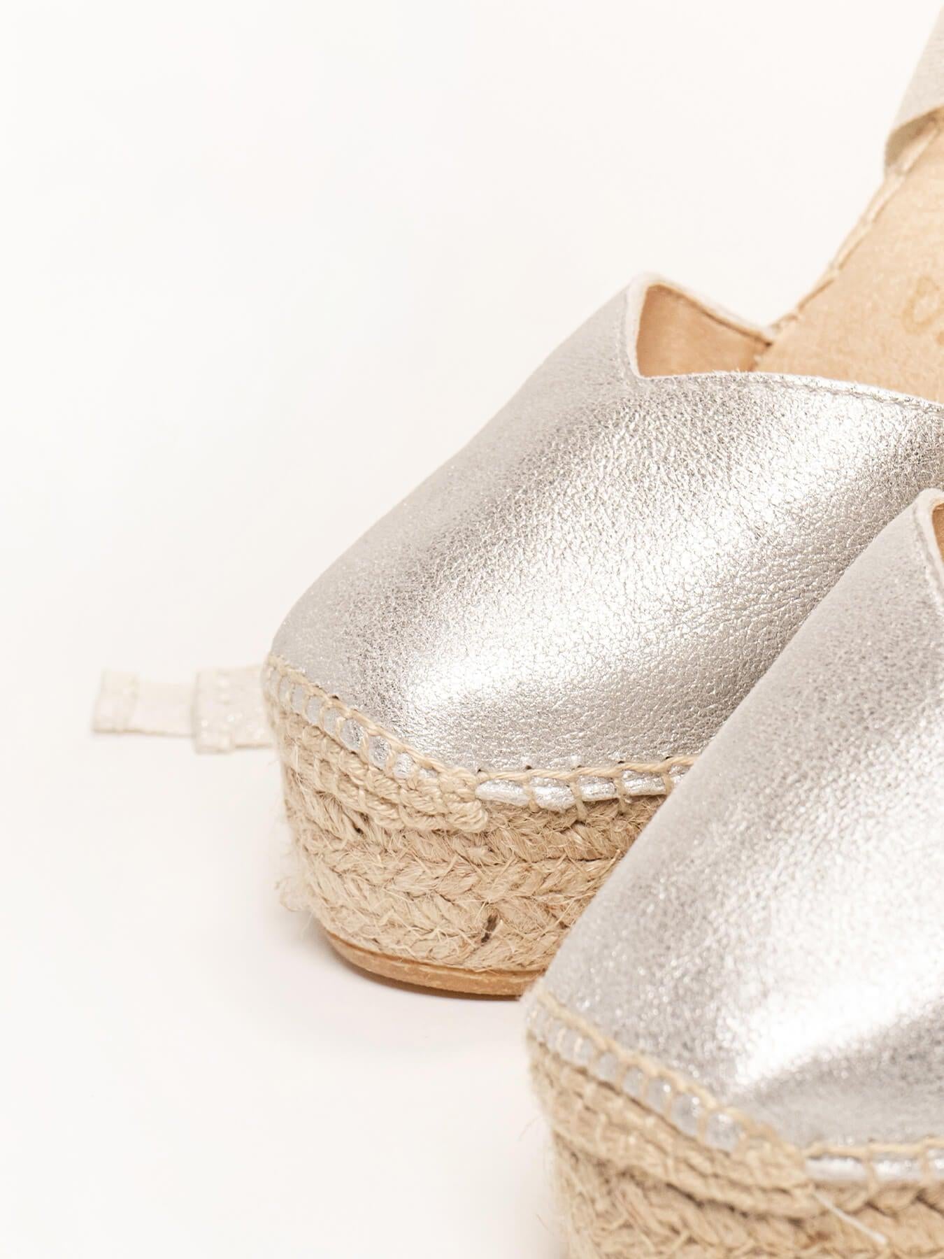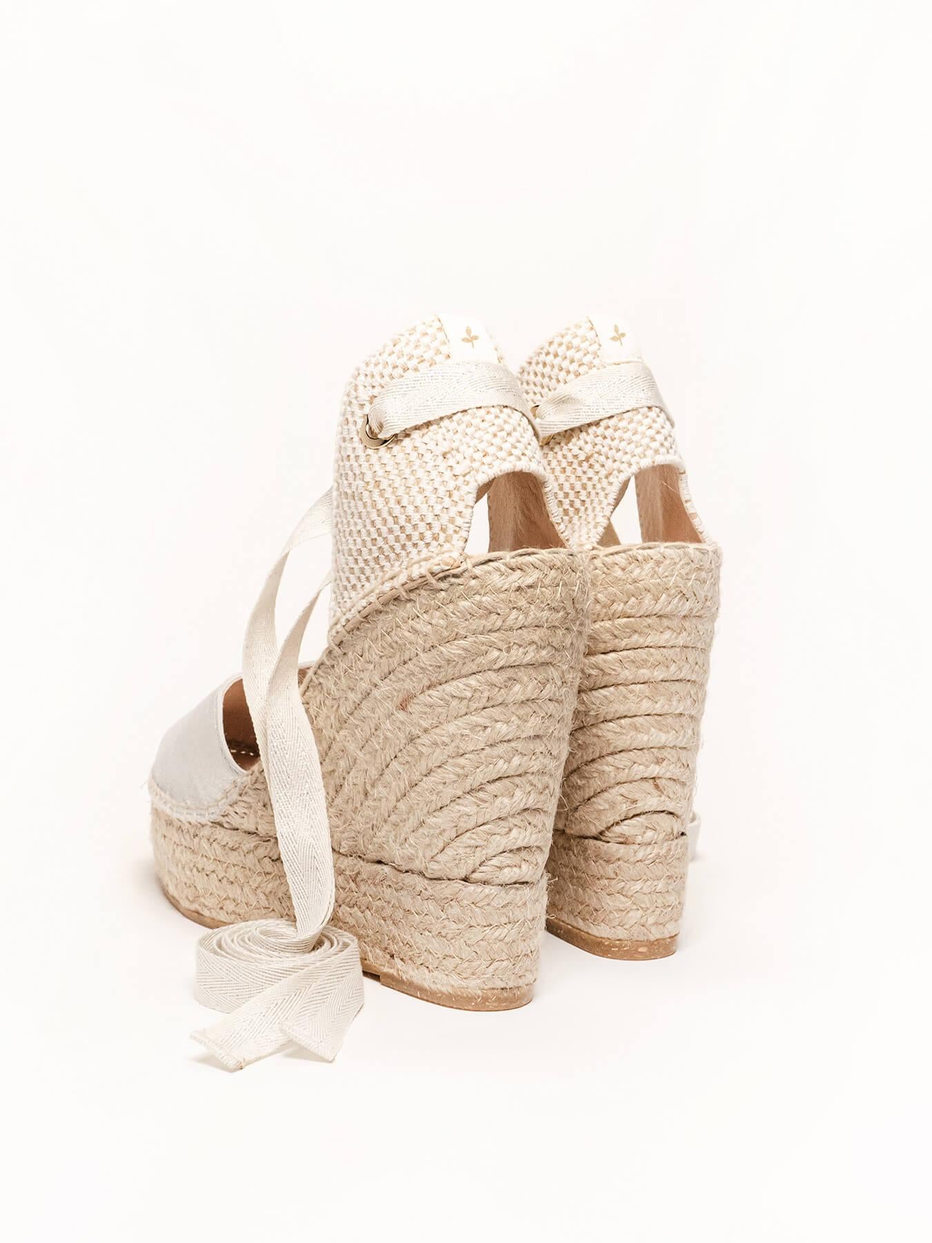 - Cuña de trenza de Yute natural con suela de goma reciclada mezclada con fibras naturales.