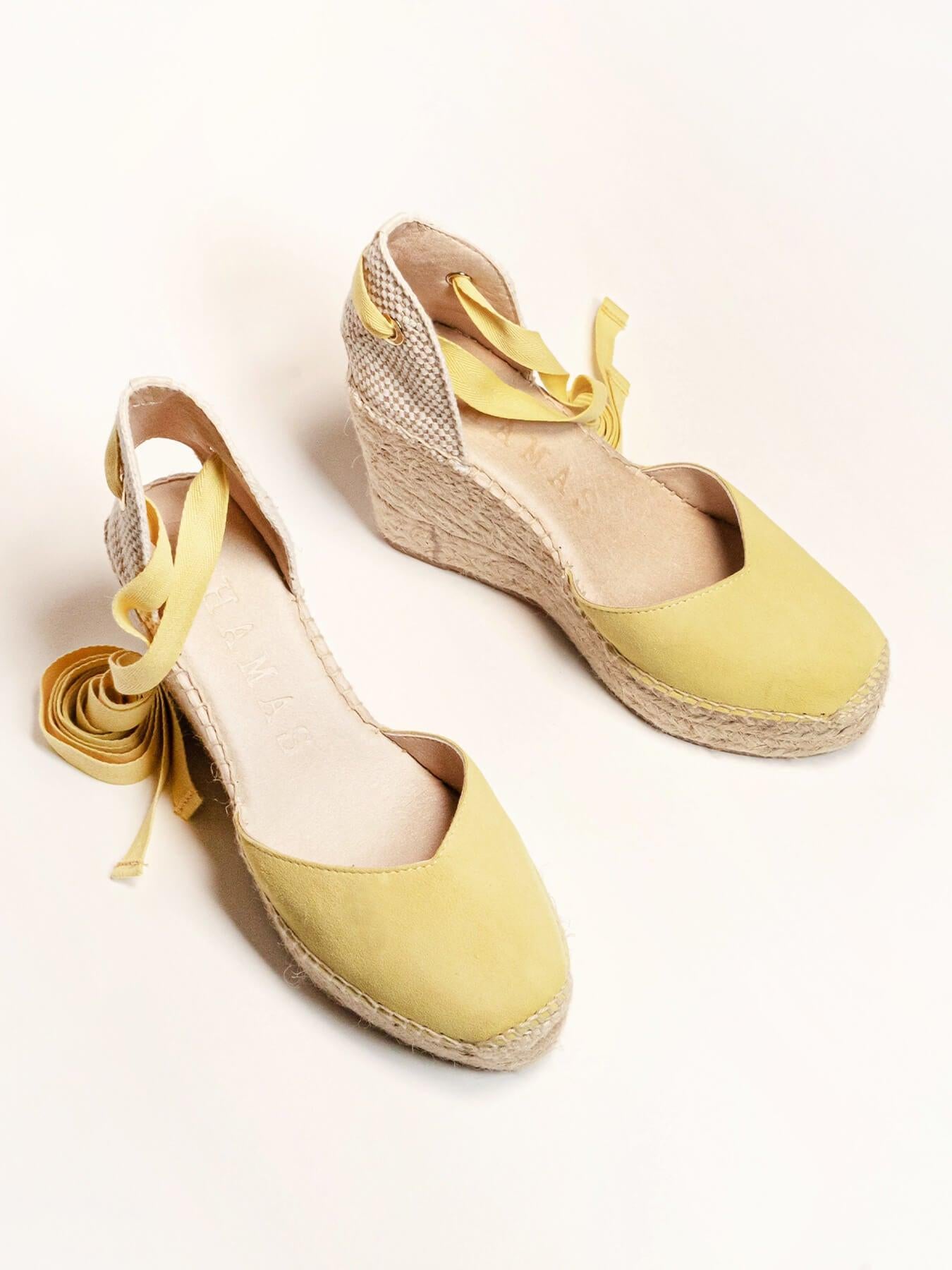 La alpargata de cuña alta Romero, es nuestro modelo más icónico. Una alpargata valenciana de escote corazón con cintas que podrás llevar con tus looks especiales y también con los del día a día. Podrás darle un toque especial porque las cintas se pueden cambiar.