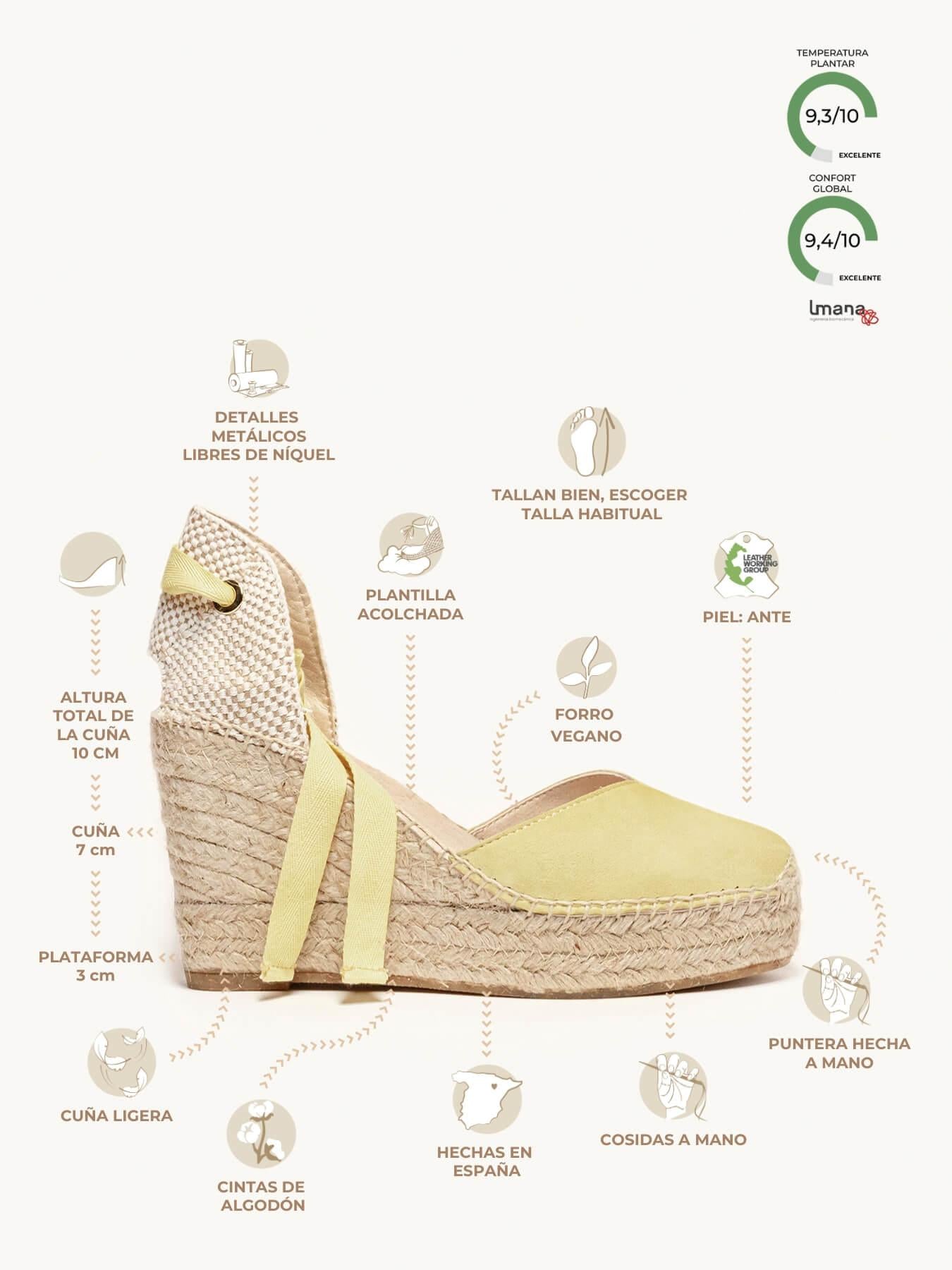 Alpargata Cuña Alta: 10 cm totales (3 de plataforma + 7 de cuña).