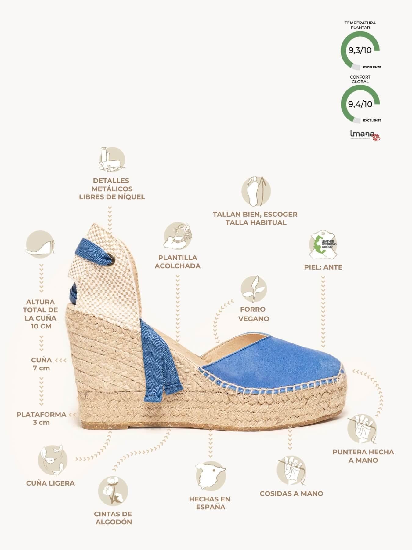 Alpargata Cuña Alta: 10 cm totales (3 de plataforma + 7 de cuña).