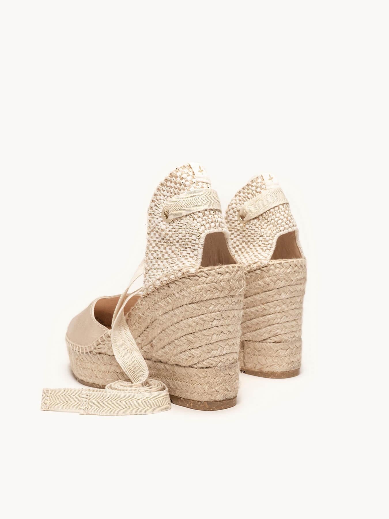 - Cuña de trenza de yute natural con suela de goma reciclada mezclada con fibras naturales