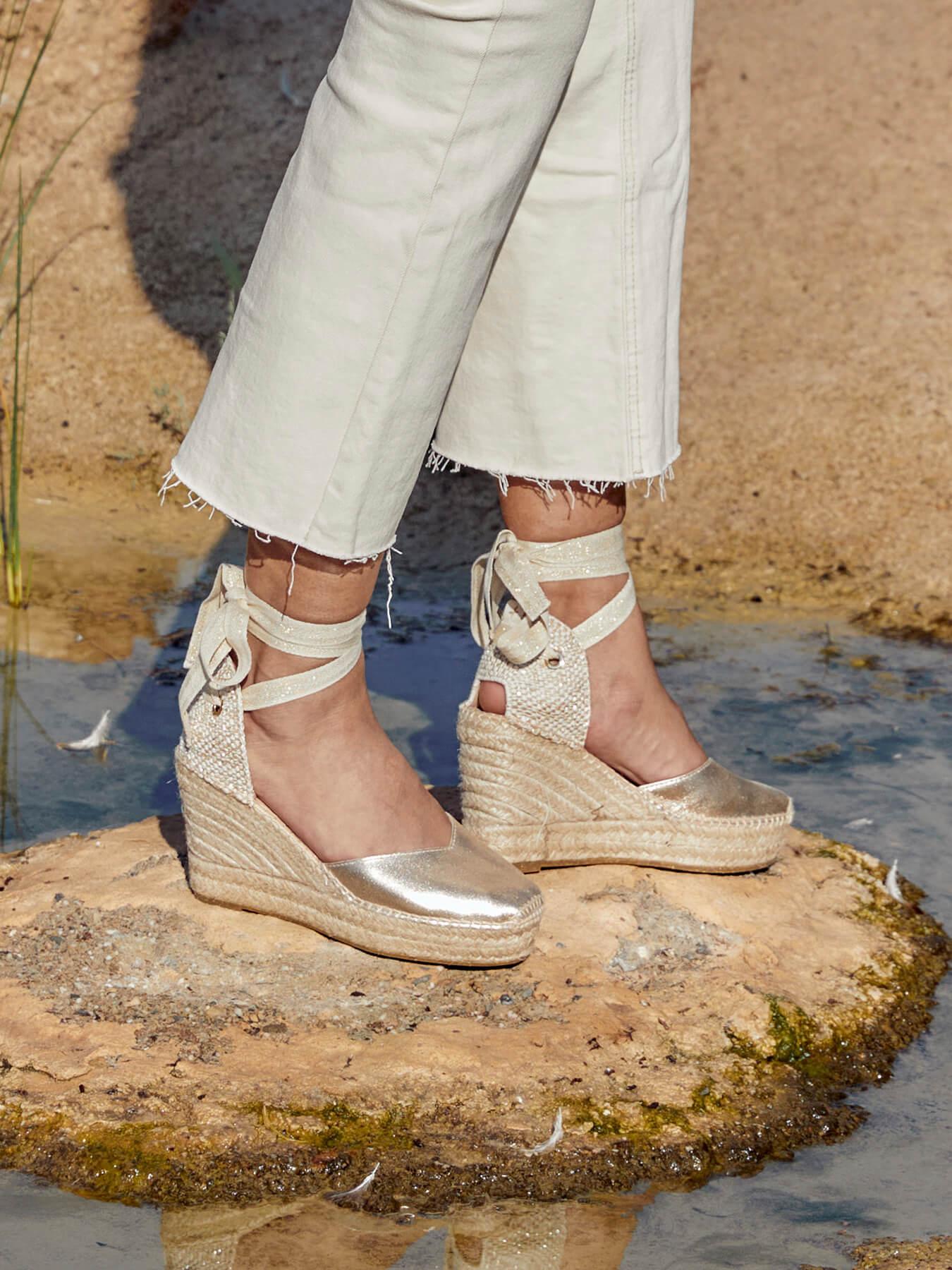 La alpargata de cuña alta Romero, es nuestro modelo más icónico. Una alpargata valenciana de escote corazón con cintas que podrás llevar con tus looks especiales y también con los del día a día. Podrás darle un toque especial porque las cintas se pueden cambiar.