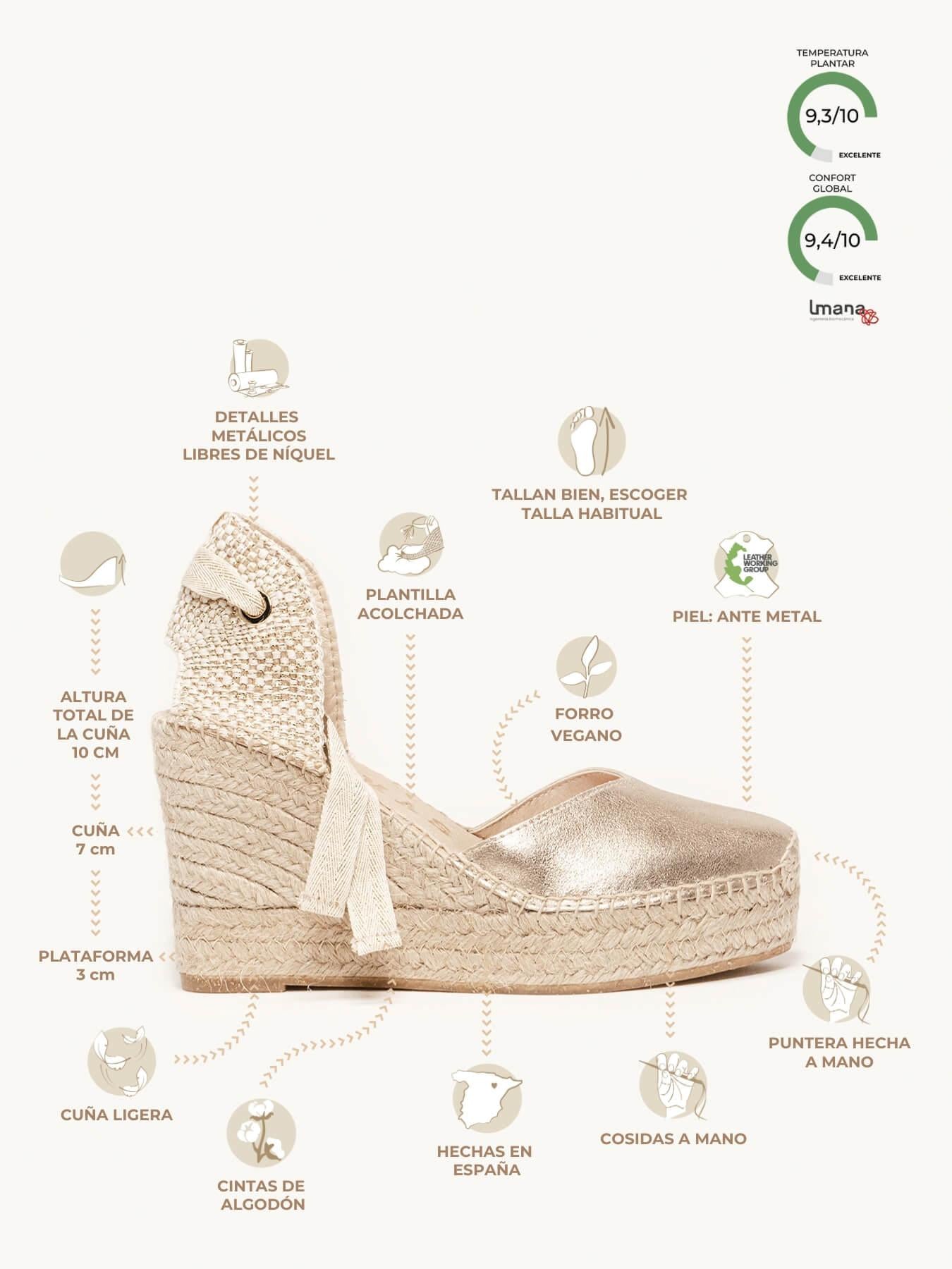 Alpargata Cuña Alta: 10 cm totales (3 de plataforma + 7 de cuña).
