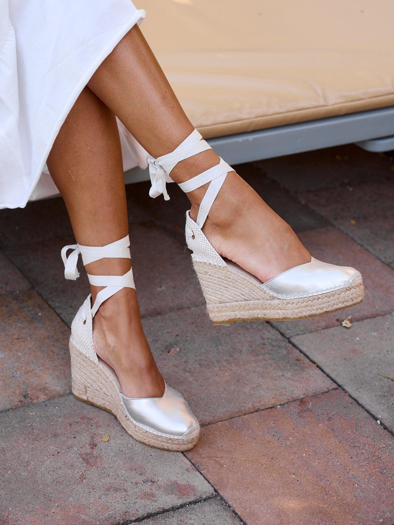 La alpargata de cuña alta Romero, es nuestro modelo más icónico. Una alpargata valenciana de escote corazón con cintas que podrás llevar con tus looks especiales y también con los del día a día. Podrás darle un toque especial porque las cintas se pueden cambiar.