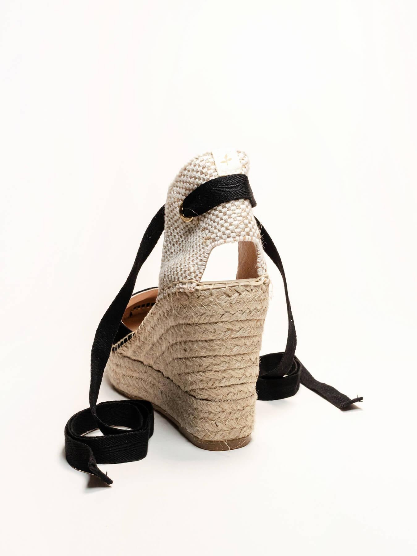 - Cuña de trenza de Yute natural con suela de goma reciclada mezclada con fibras naturales.