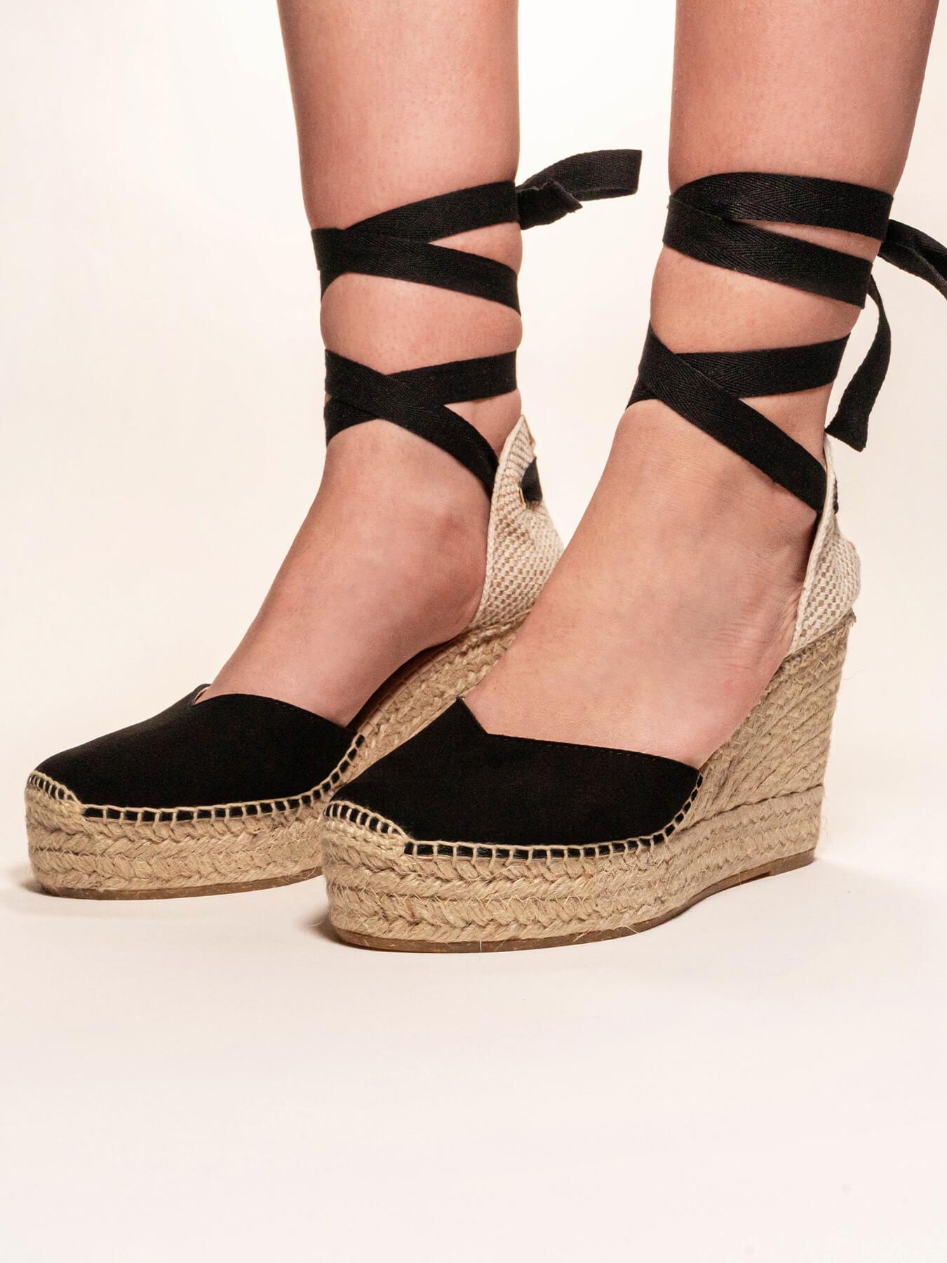 La alpargata de cuña alta Romero, es nuestro modelo más icónico. Una alpargata valenciana de escote corazón con cintas que podrás llevar con tus looks especiales y también con los del día a día. Podrás darle un toque especial porque las cintas se pueden cambiar.