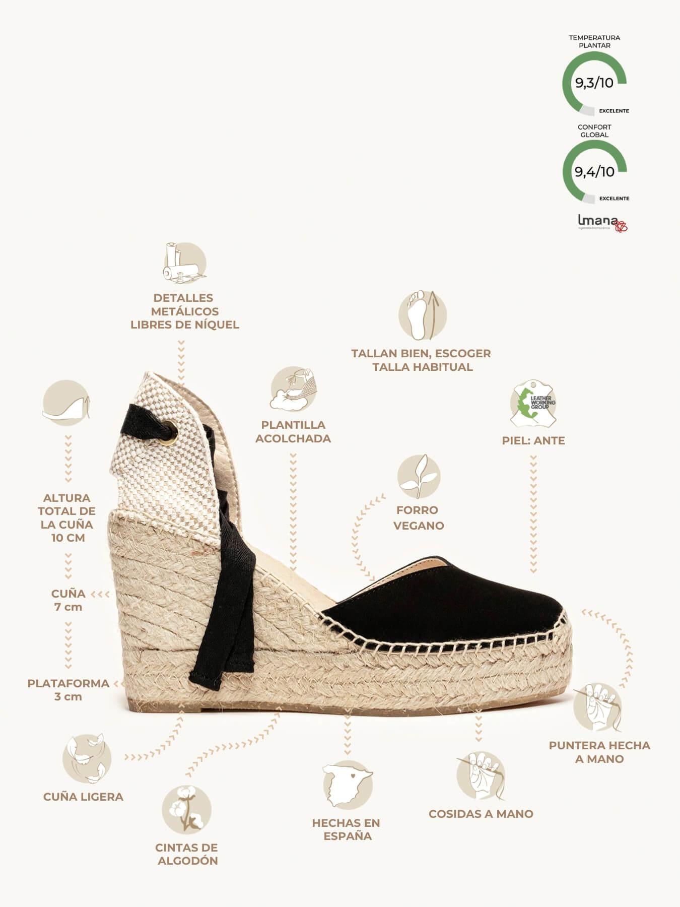 Alpargata Cuña Alta: 10 cm totales (3 de plataforma + 7 de cuña).