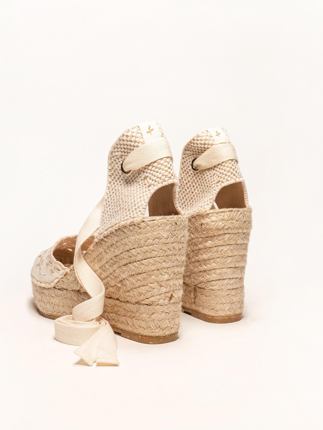 La alpargata de cuña alta Romero, es nuestro modelo más icónico. Una alpargata valenciana de escote corazón con cintas que podrás llevar con tus looks especiales y también con los del día a día. Podrás darle un toque especial porque las cintas se pueden cambiar.