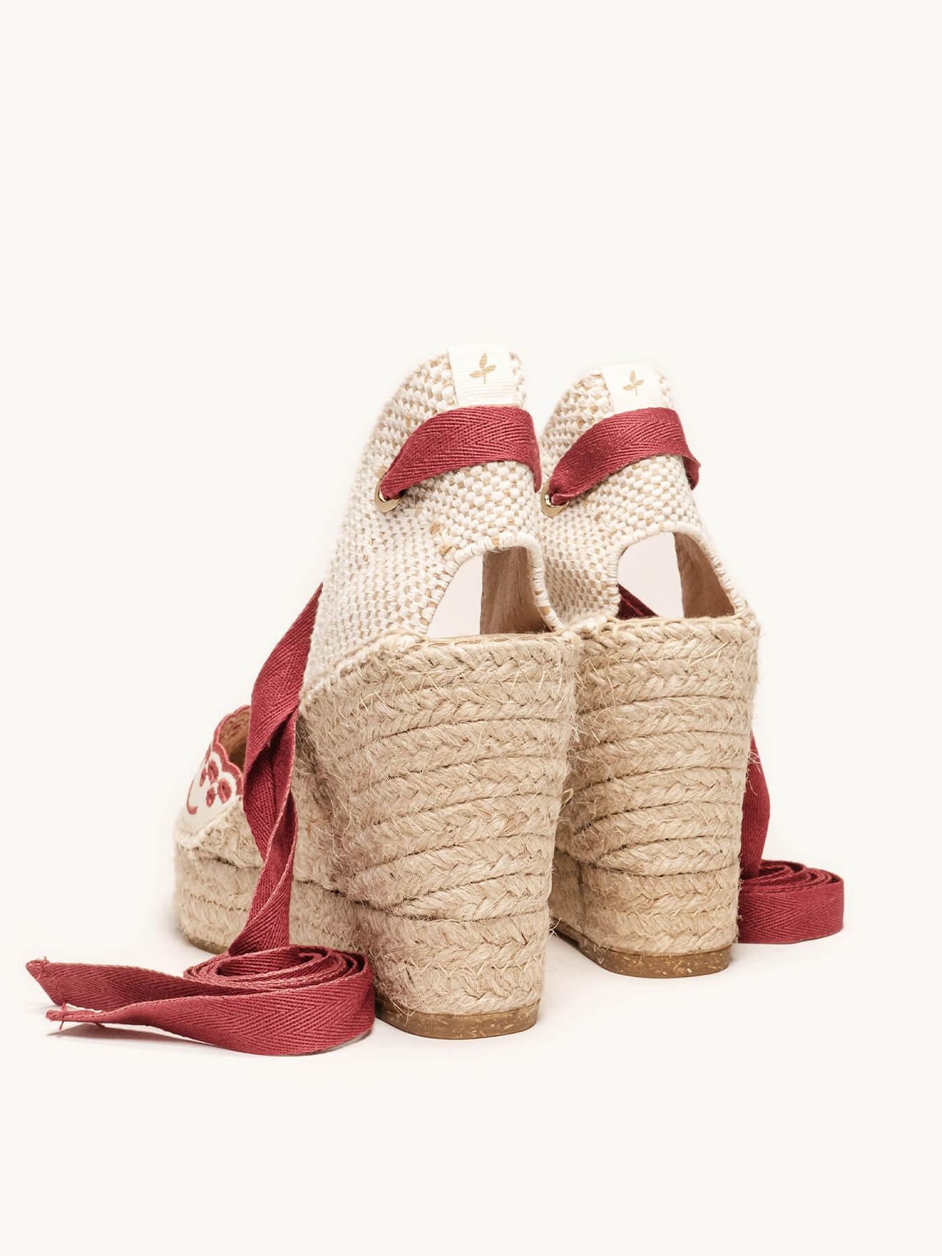 La alpargata de cuña alta Romero es nuestro modelo más icónico. Una alpargata valenciana de escote corazón con cintas que podrás llevar con tus looks especiales y también con los del día a día. Podrás darle un toque especial porque las cintas se pueden cambiar.