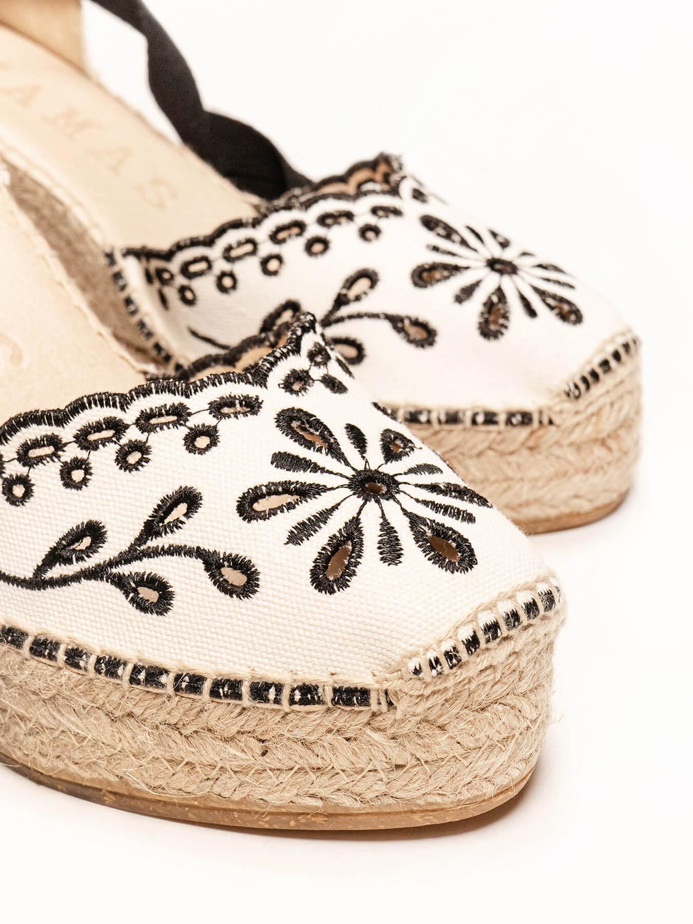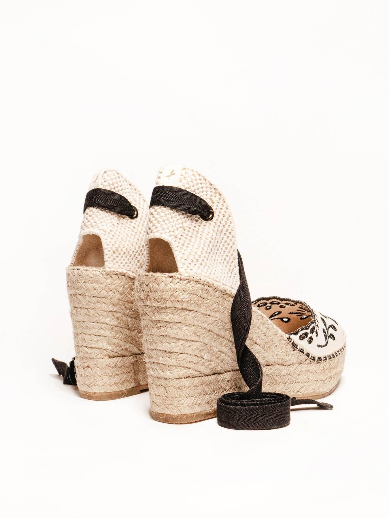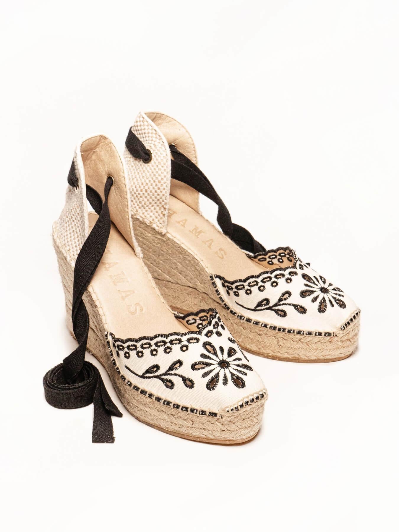 La alpargata de cuña alta Romero, es nuestro modelo más icónico. Una alpargata valenciana de escote corazón con cintas que podrás llevar con tus looks especiales y también con los del día a día. Podrás darle un toque especial porque las cintas se pueden cambiar.