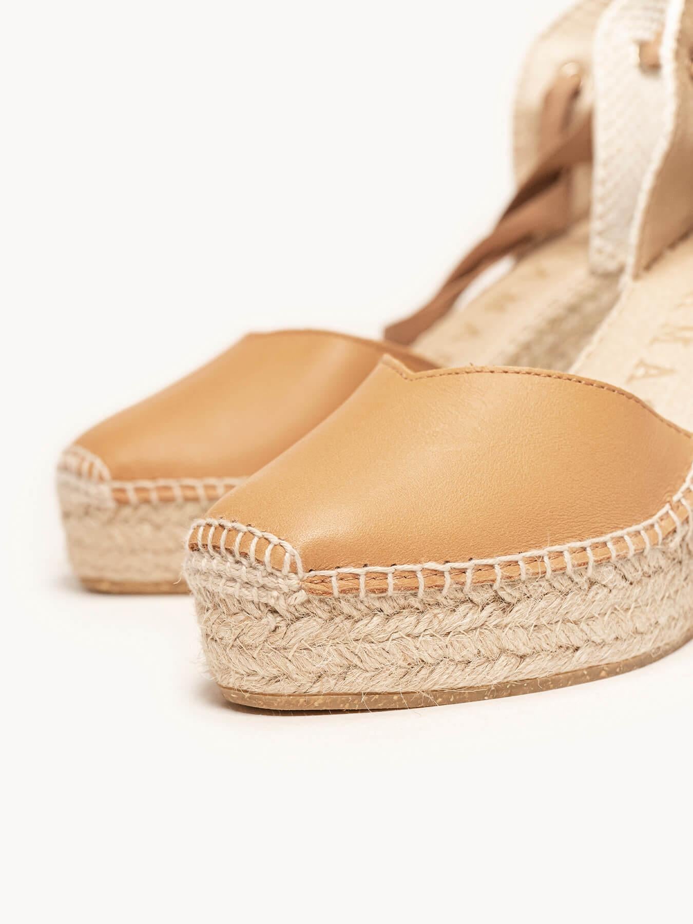 - Cuña de trenza de yute natural con suela de goma reciclada mezclada con fibras naturales