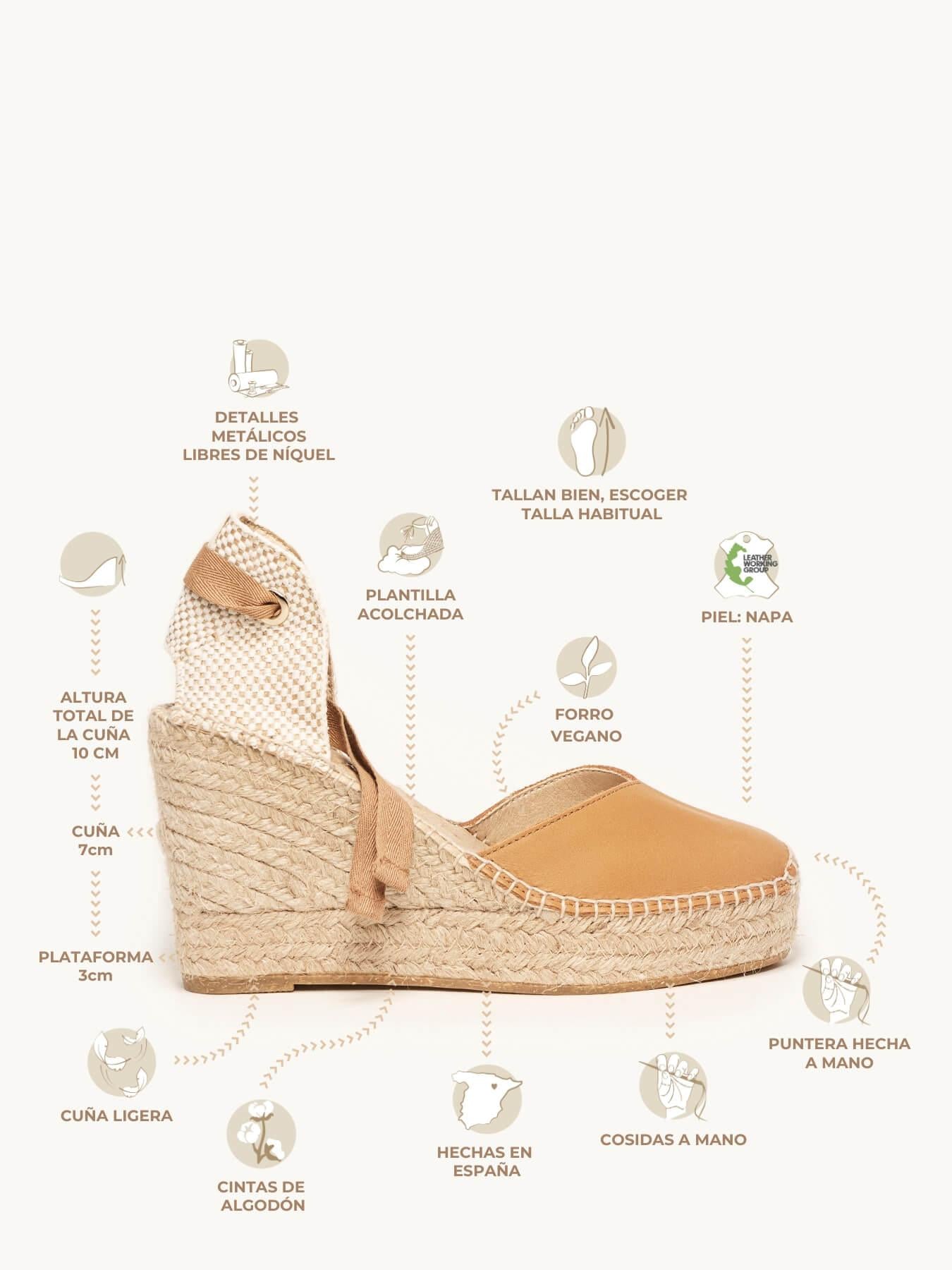 Alpargata Cuña Alta: 10 cm totales (3 de plataforma + 7 de cuña).