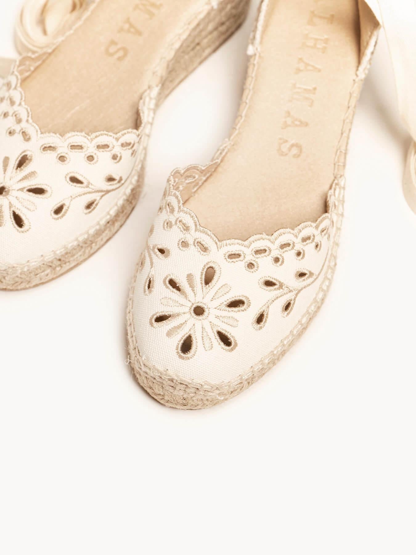 Romero Cuña Baja Lona Bordada Crudo
