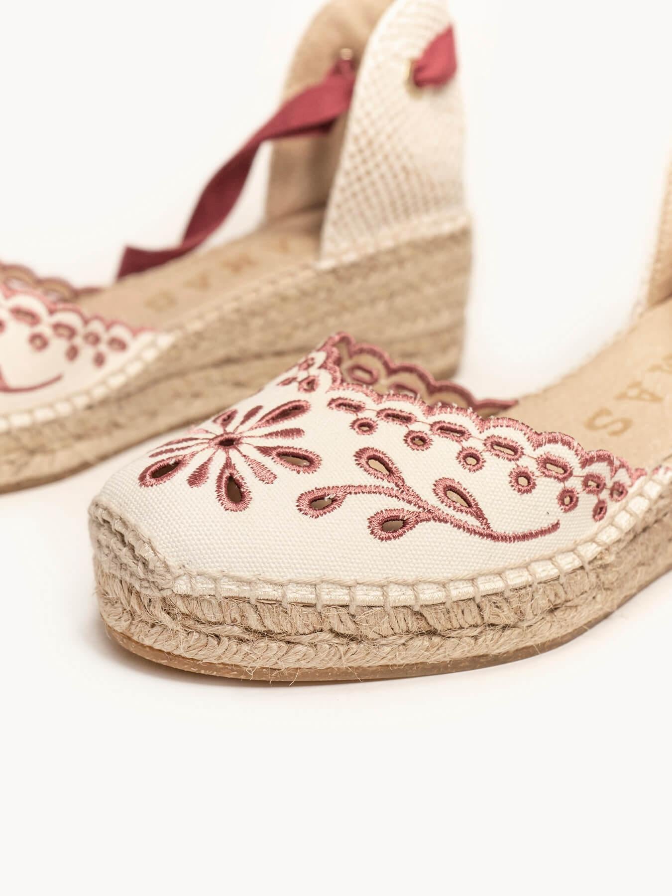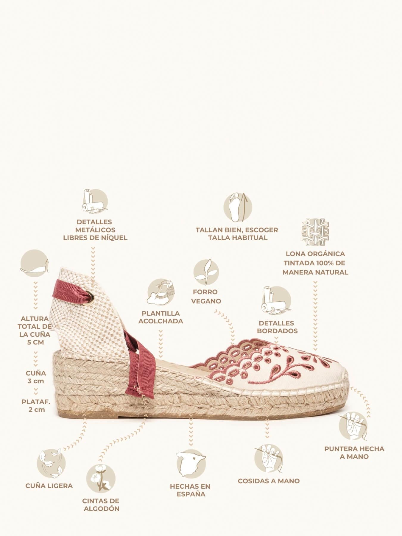 - El tejido bordado de la alpargata Romero es de algodón orgánico tintado con tintes 100% naturales.