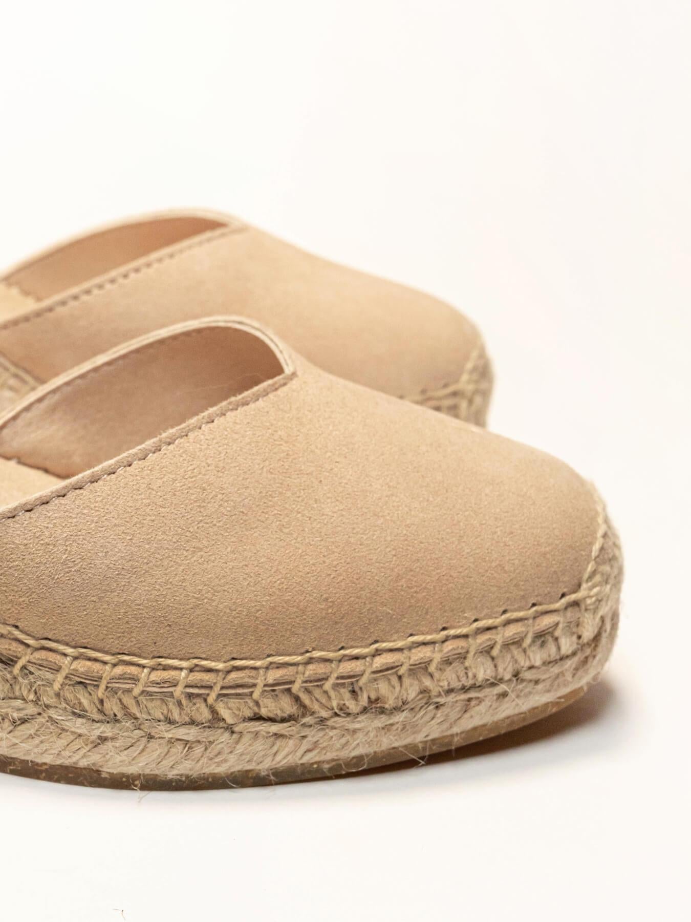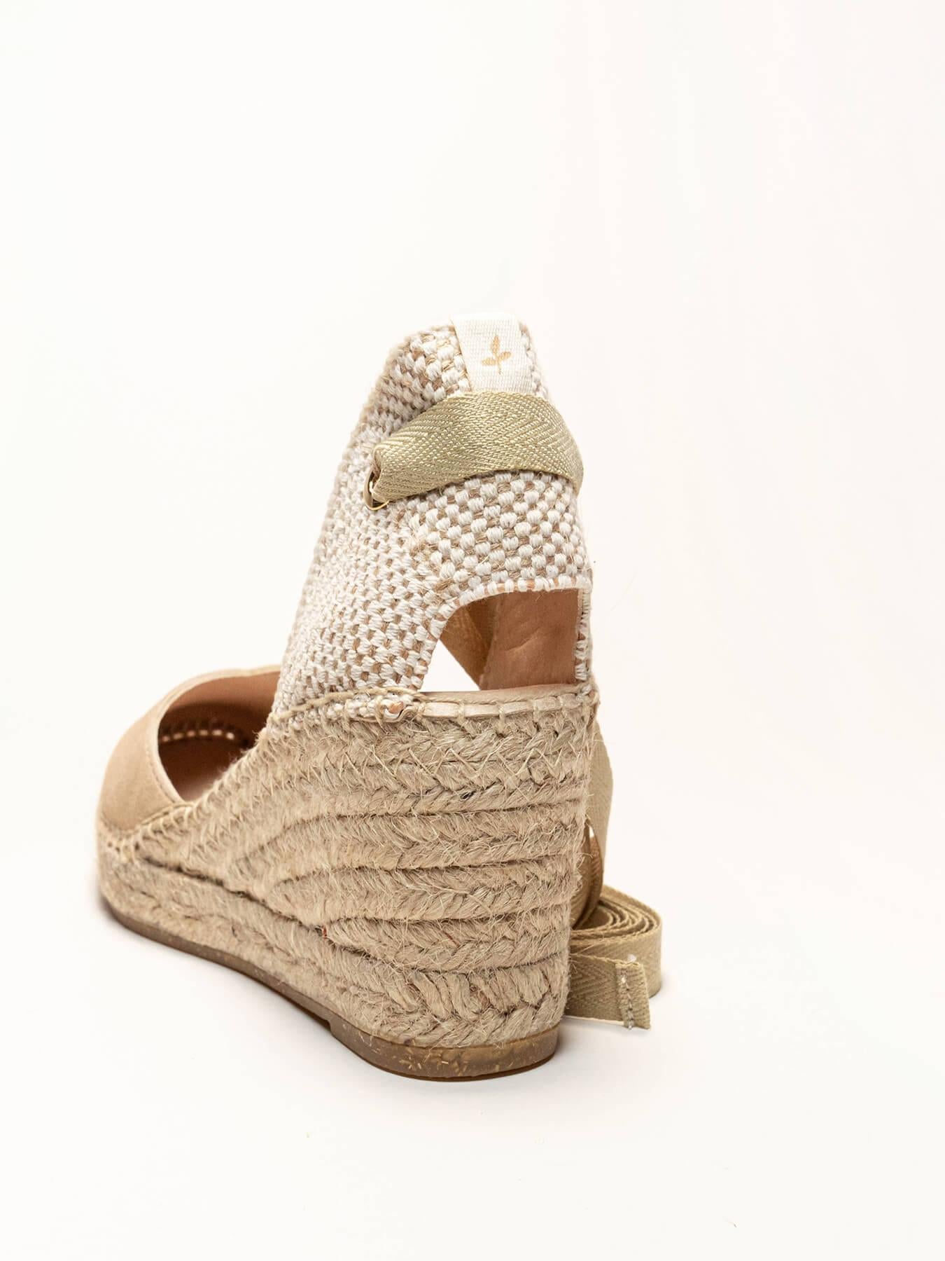 - Cuña de trenza de Yute natural con suela de goma reciclada mezclada con fibras naturales.