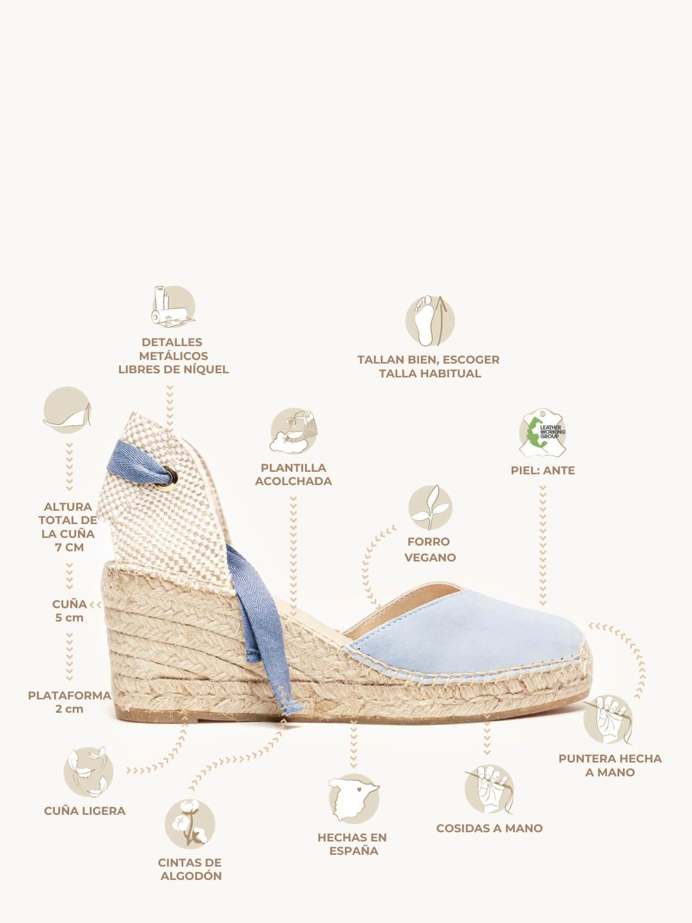 La alpargata de cuña media Romero, es nuestro modelo más icónico. Una alpargata valenciana de escote corazón con cintas que podrás llevar con tus looks especiales y también con los del día a día. Podrás darle un toque especial porque las cintas se pueden cambiar.