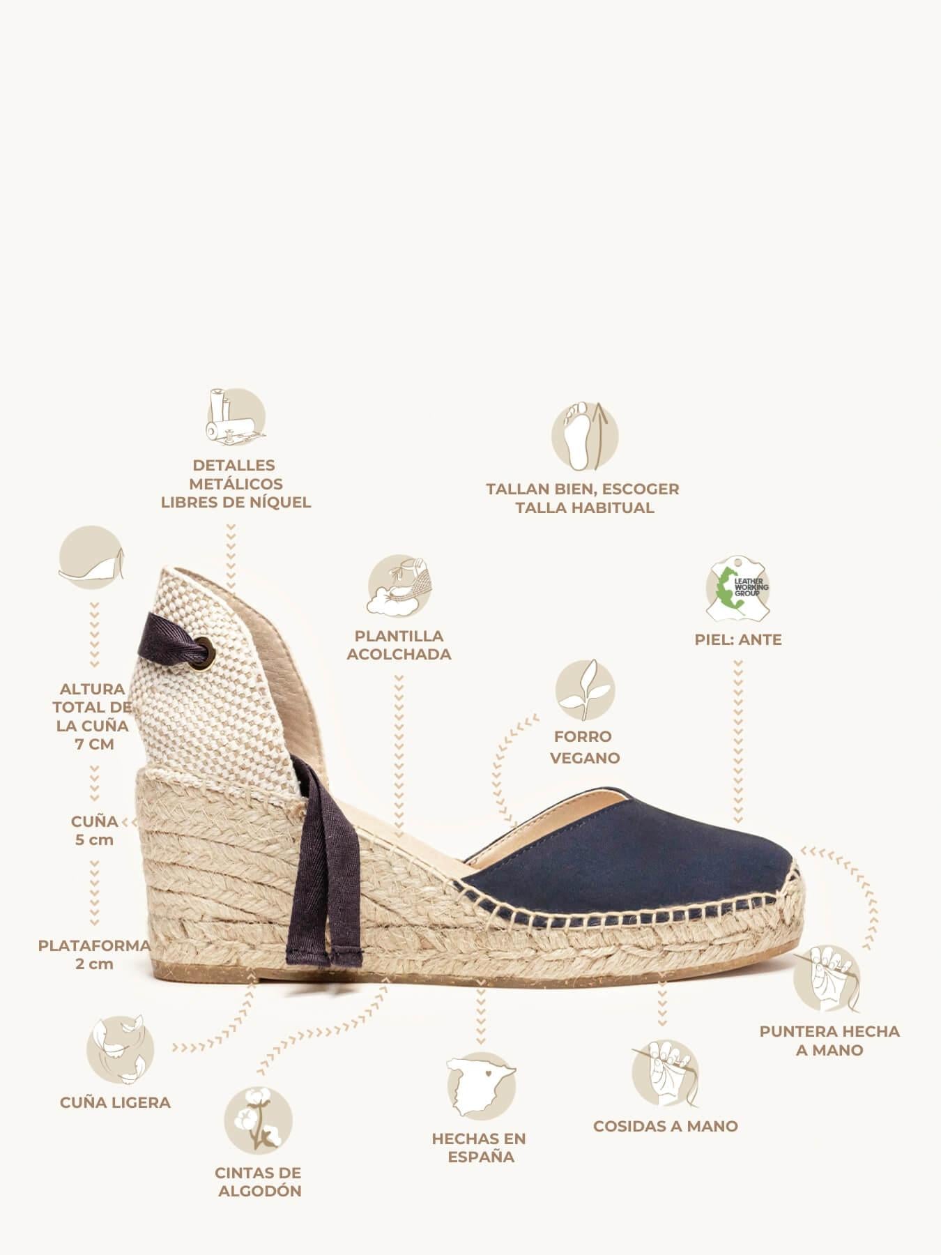 La alpargata de cuña media Romero, es nuestro modelo más icónico. Una alpargata valenciana de escote corazón con cintas que podrás llevar con tus looks especiales y también con los del día a día. Podrás darle un toque especial porque las cintas se pueden cambiar.