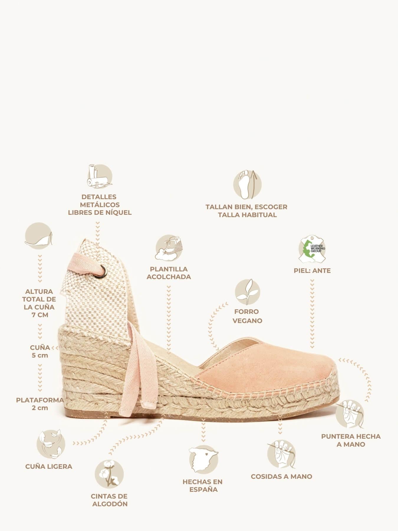 Alpargata Cuña Media: 7 cm totales (2 de plataforma + 5 de cuña).