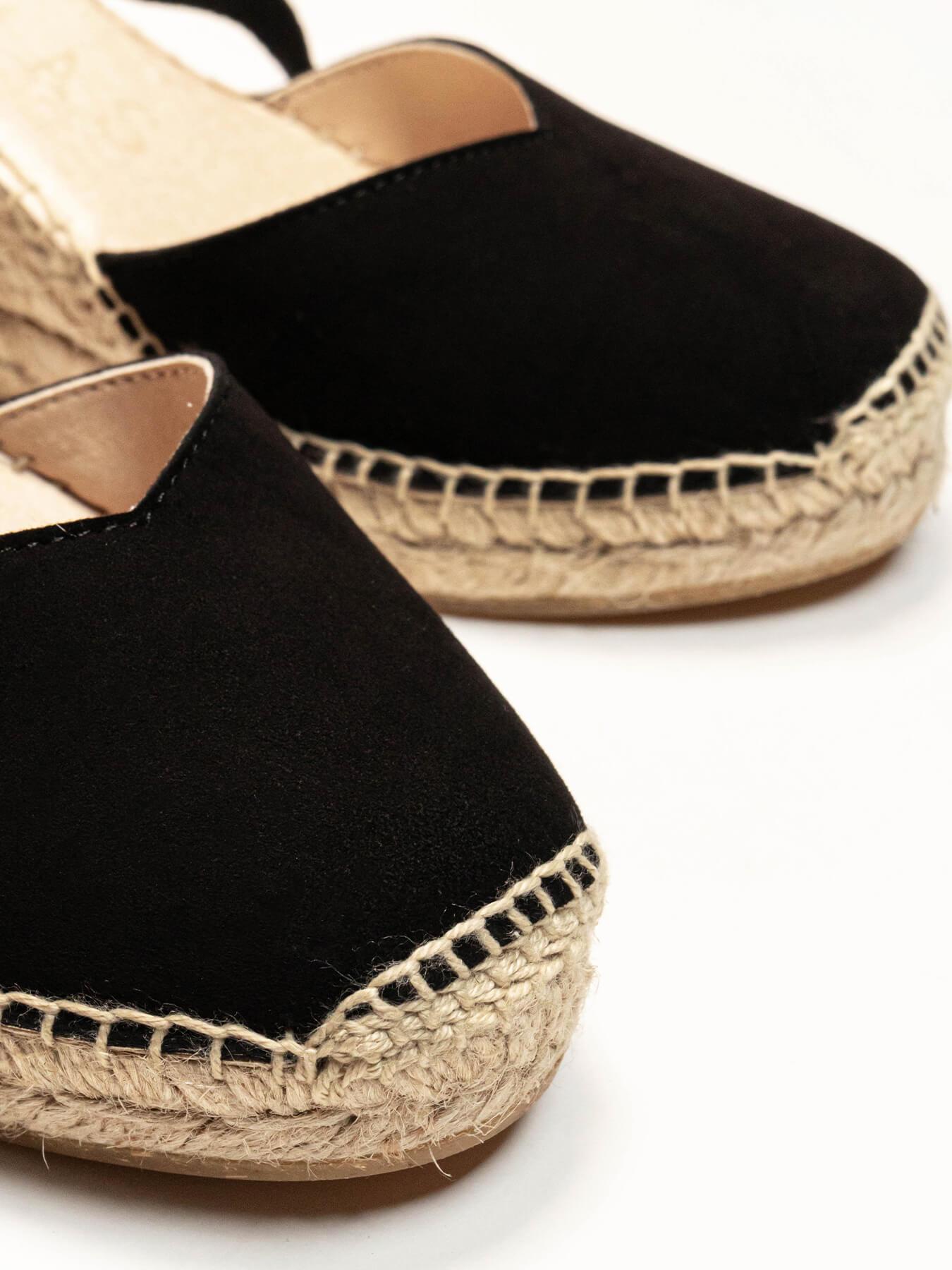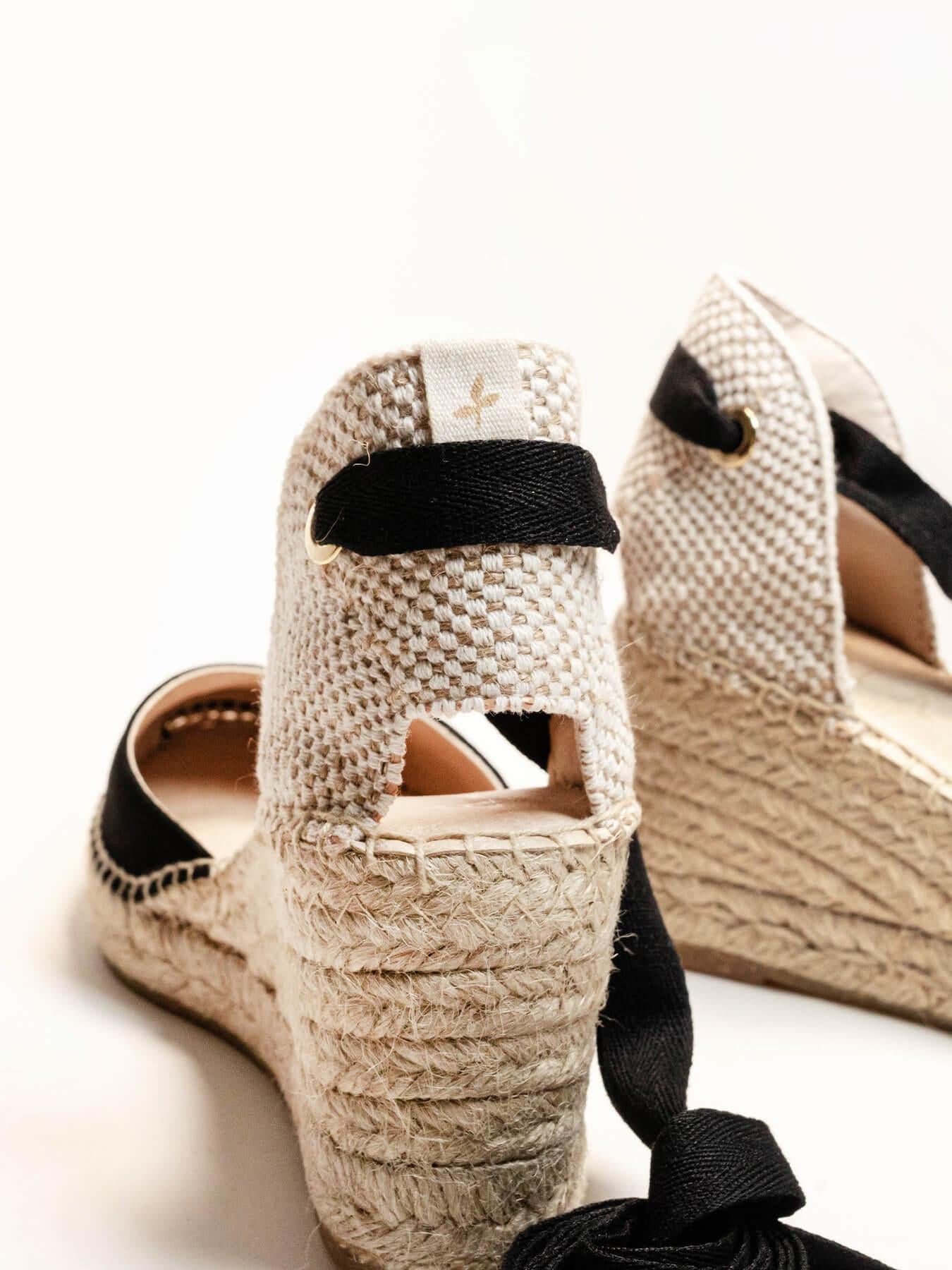 - Cuña de trenza de Yute natural con suela de goma reciclada mezclada con fibras naturales.