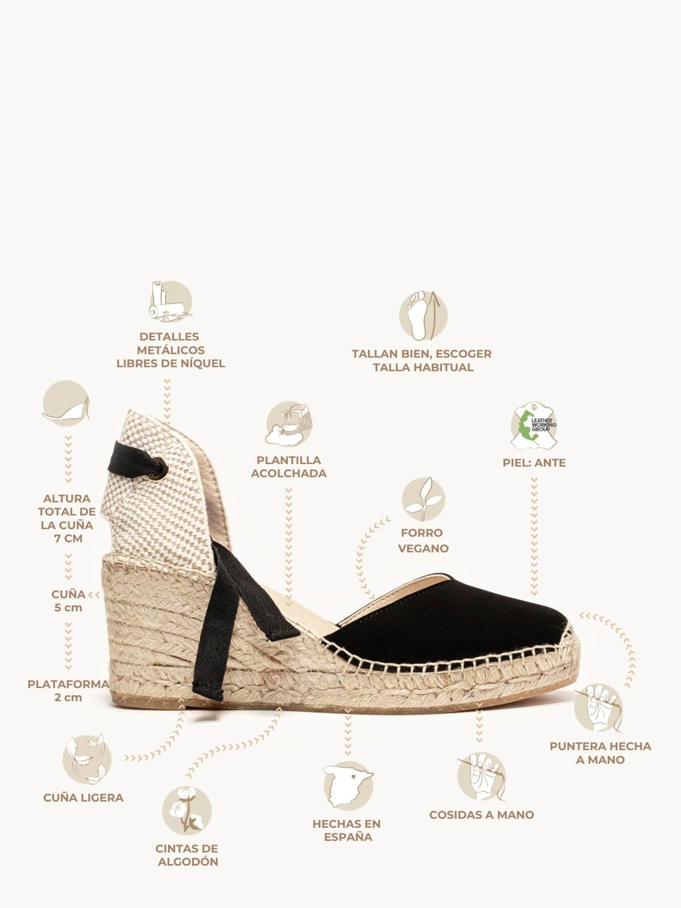 La alpargata de cuña media Romero, es nuestro modelo más icónico. Una alpargata valenciana de escote corazón con cintas que podrás llevar con tus looks especiales y también con los del día a día. Podrás darle un toque especial porque las cintas se pueden cambiar.