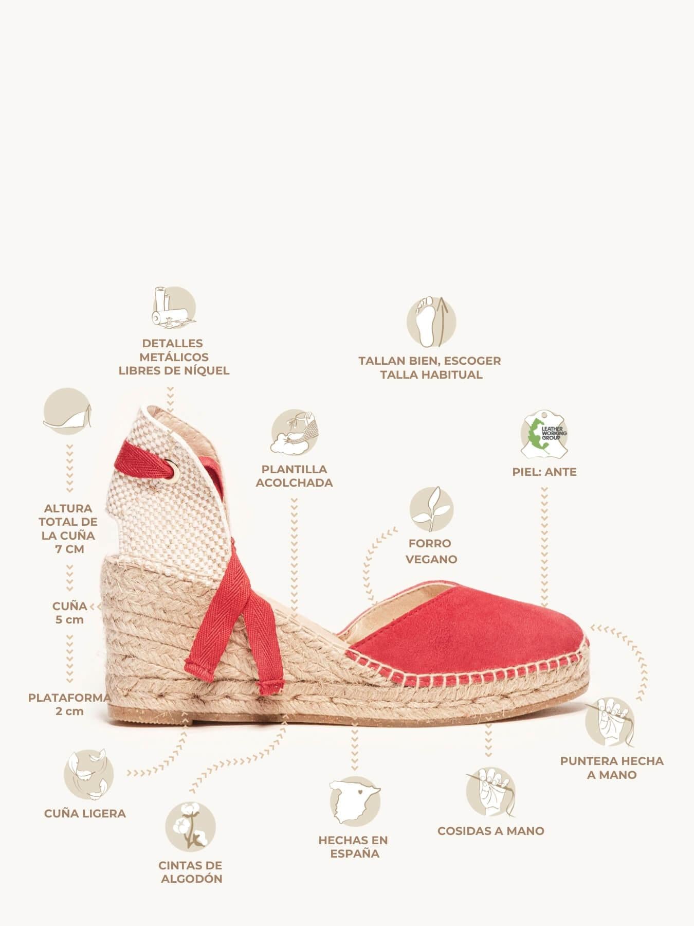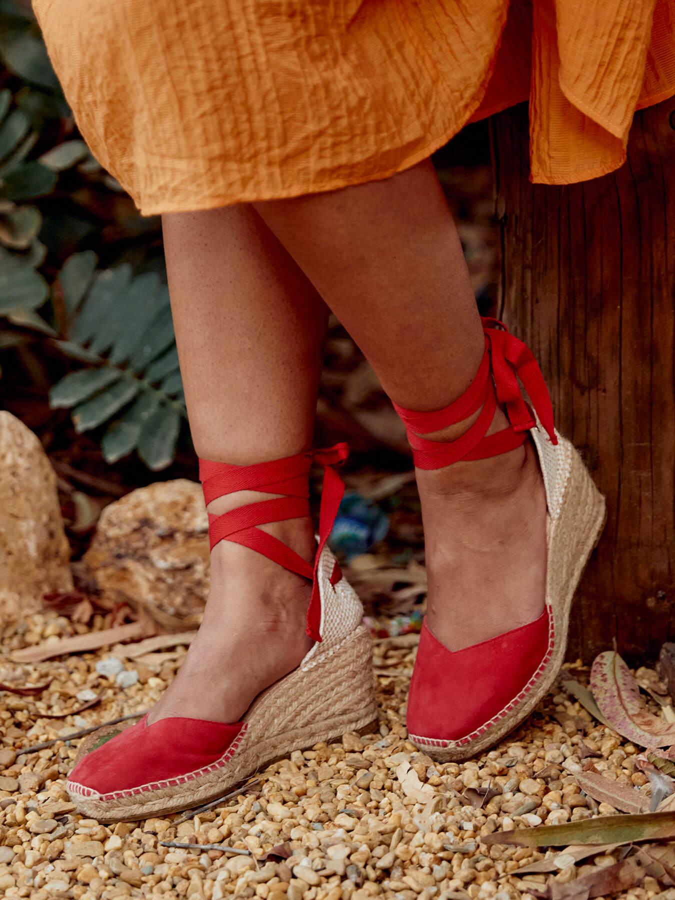 La alpargata de cuña media Romero, es nuestro modelo más icónico. Una alpargata valenciana de escote corazón con cintas que podrás llevar con tus looks especiales y también con los del día a día. Podrás darle un toque especial porque las cintas se pueden cambiar.