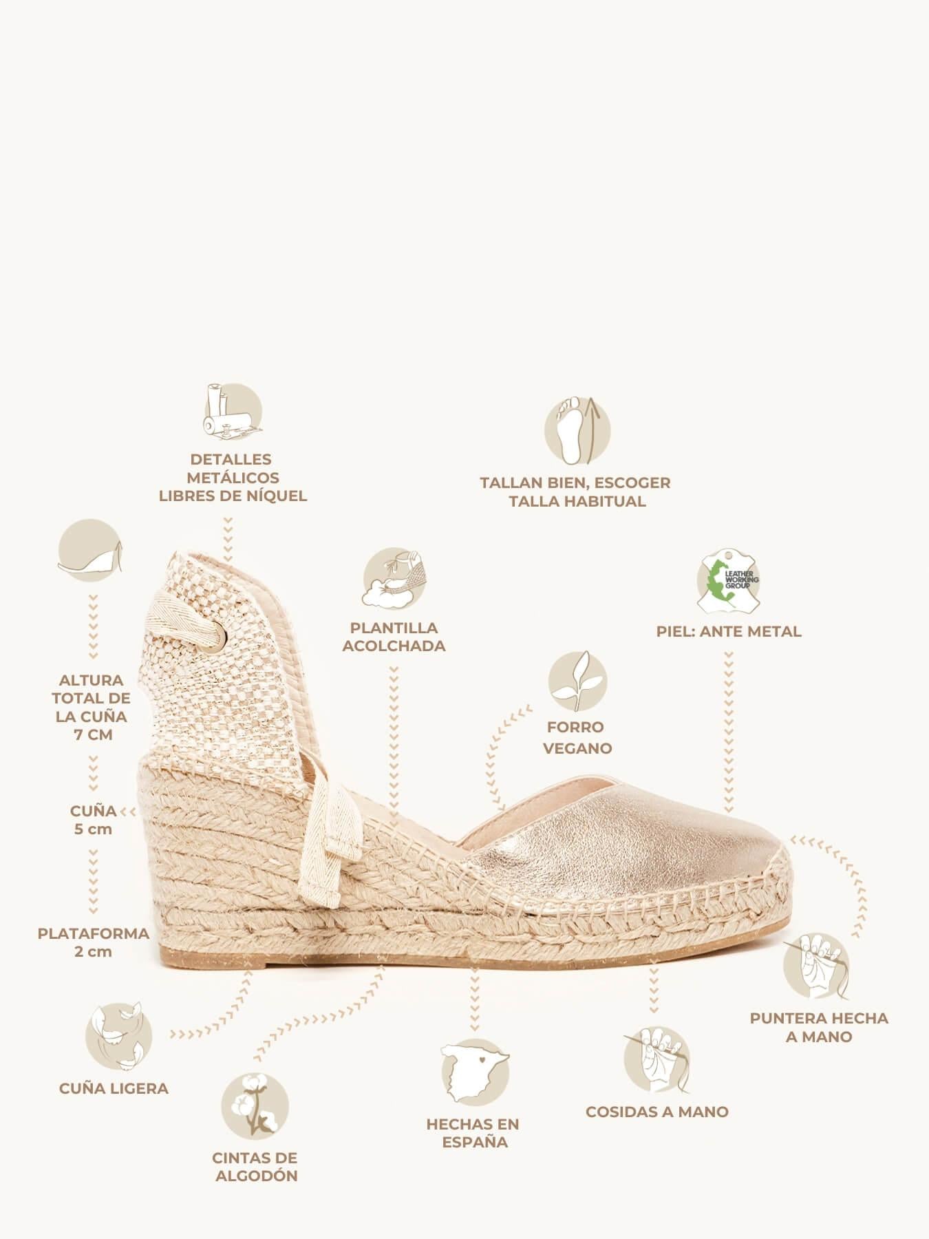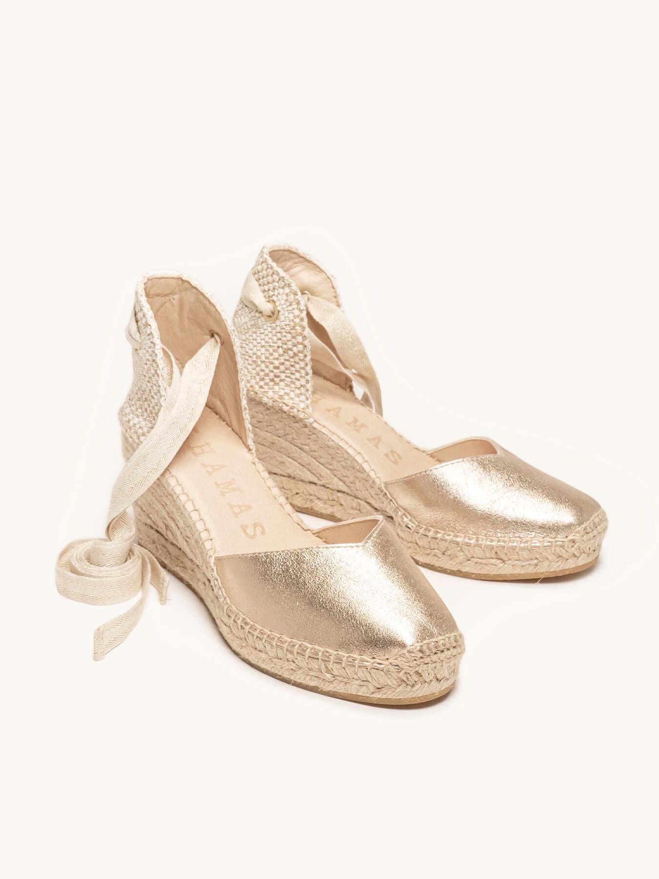 Romero Cuña media en ante metalizado color oro