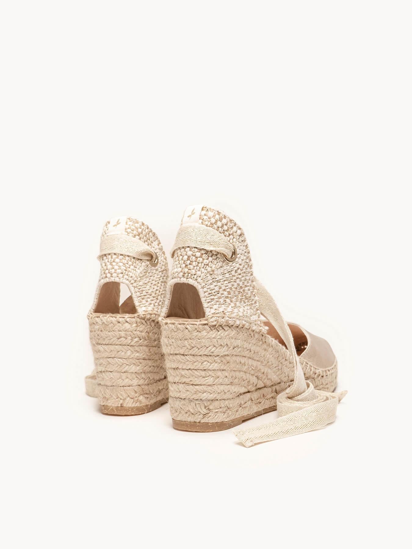- Cuña de trenza de yute natural con suela de goma reciclada mezclada con fibras naturales