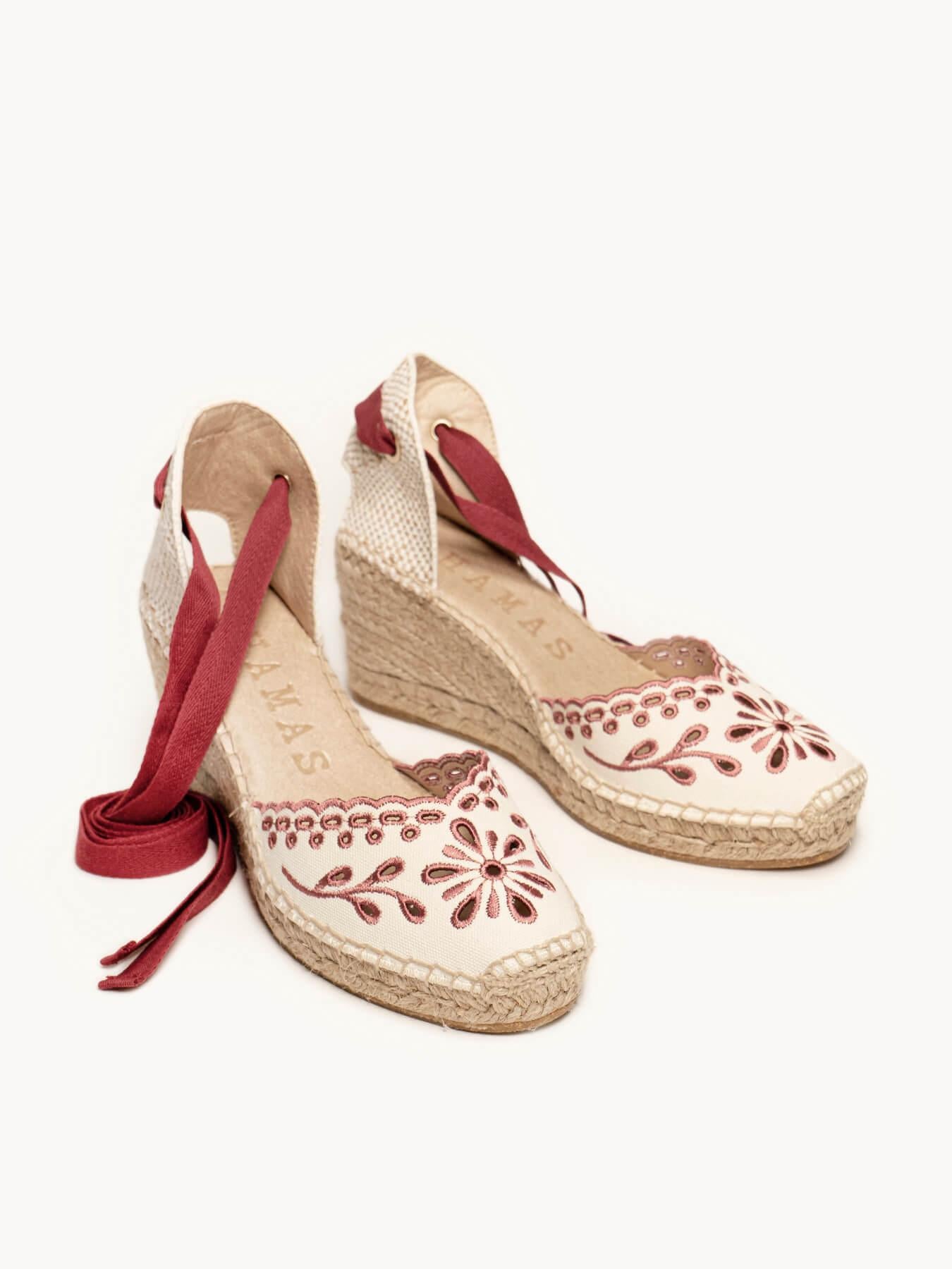La alpargata de cuña media Romero, es nuestro modelo más icónico. Una alpargata valenciana de escote corazón con cintas que podrás llevar con tus looks especiales y también con los del día a día. Podrás darle un toque especial porque las cintas se pueden cambiar.