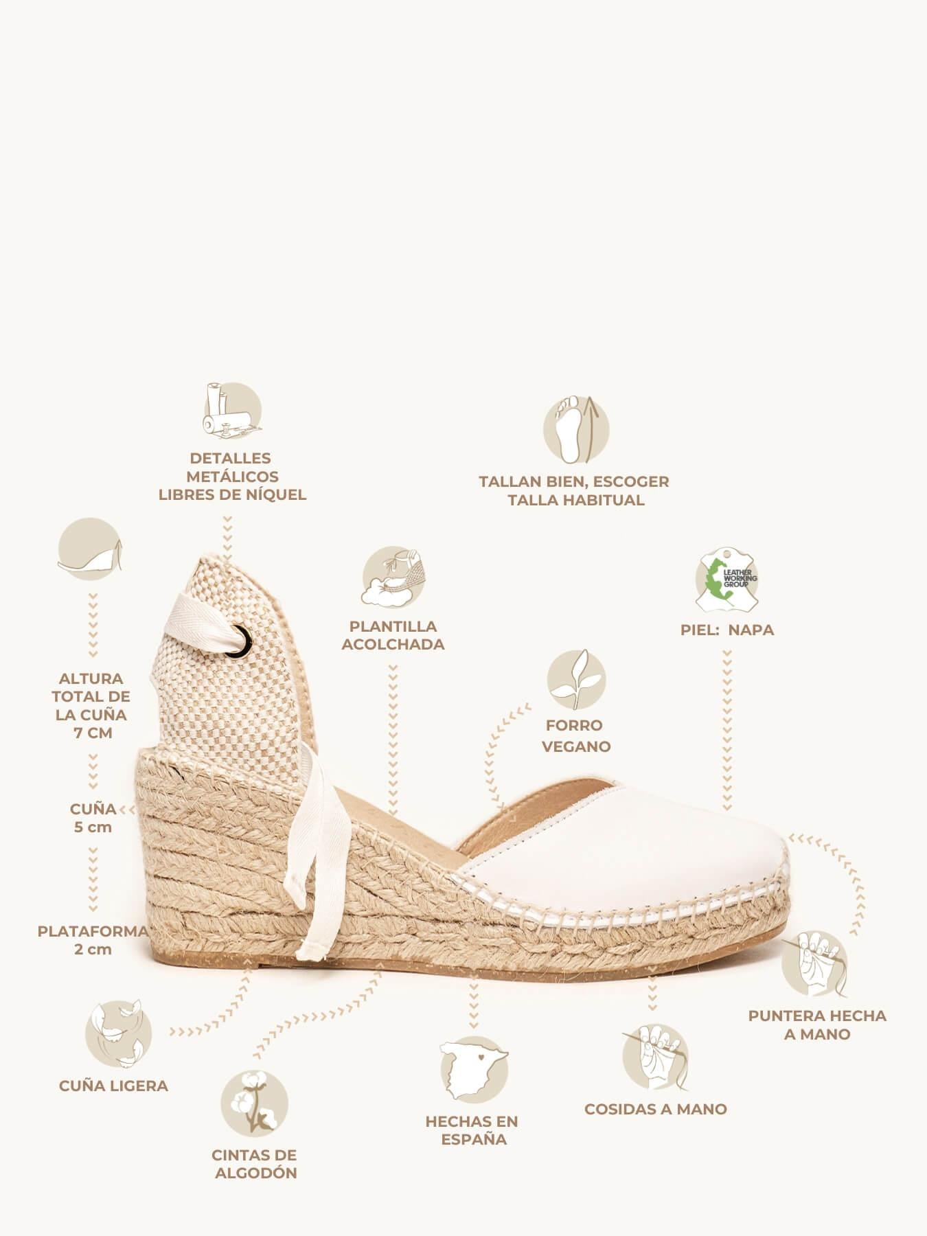 - Cuña de trenza de Yute natural con suela de goma reciclada mezclada con fibras naturales.