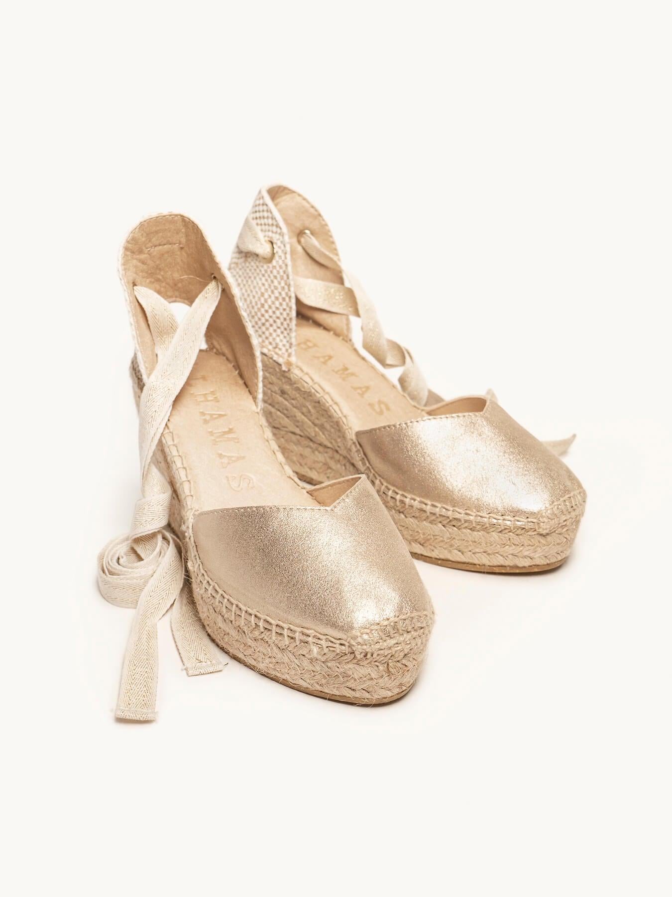 La alpargata de cuña media plataforma Romero, es nuestro modelo más icónico. Una alpargata valenciana de escote corazón con cintas que podrás llevar con tus looks especiales y también con los del día a día. Podrás darle un toque especial porque las cintas se pueden cambiar.