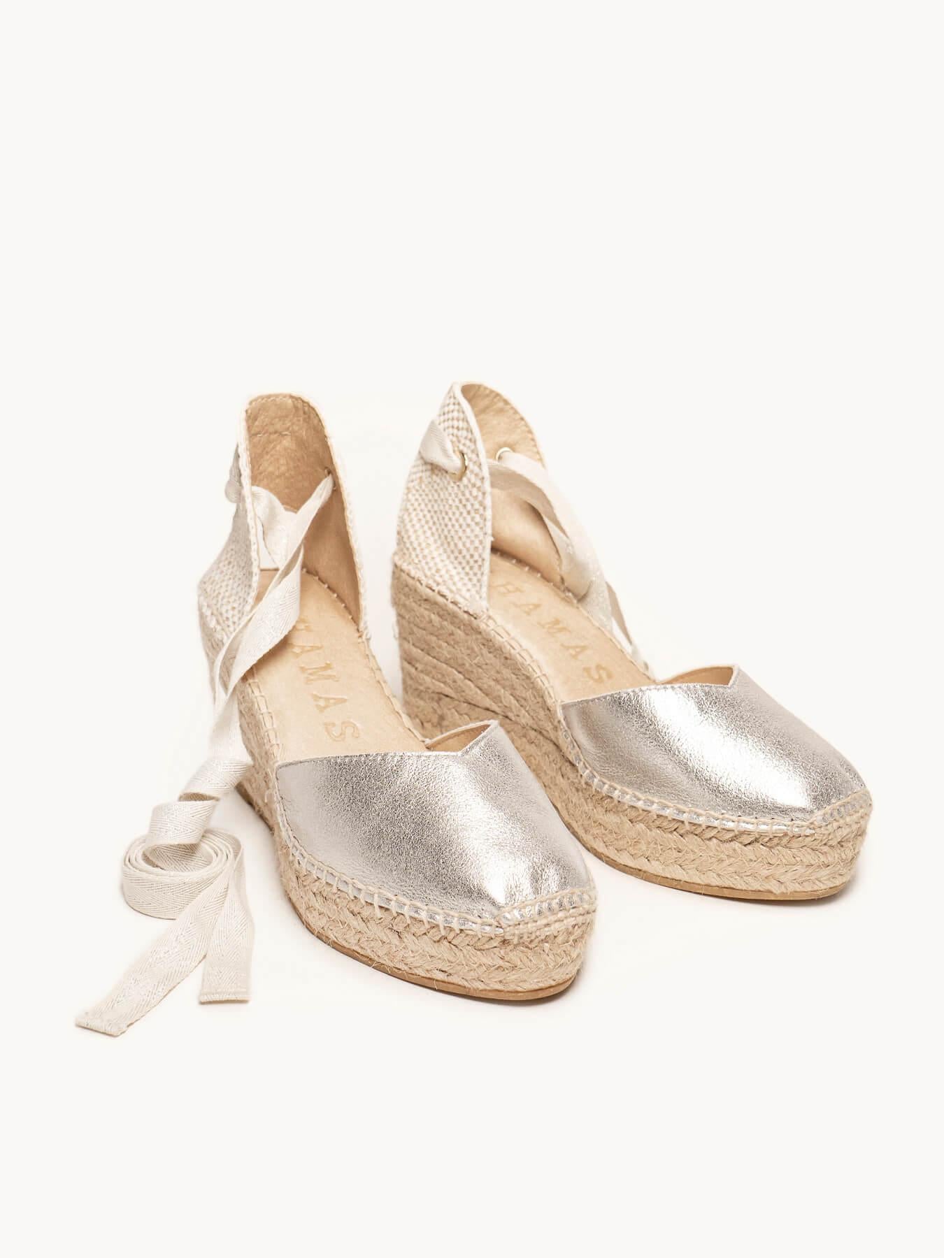 La alpargata de cuña media plataforma Romero, es nuestro modelo más icónico. Una alpargata valenciana de escote corazón con cintas que podrás llevar con tus looks especiales y también con los del día a día. Podrás darle un toque especial porque las cintas se pueden cambiar.