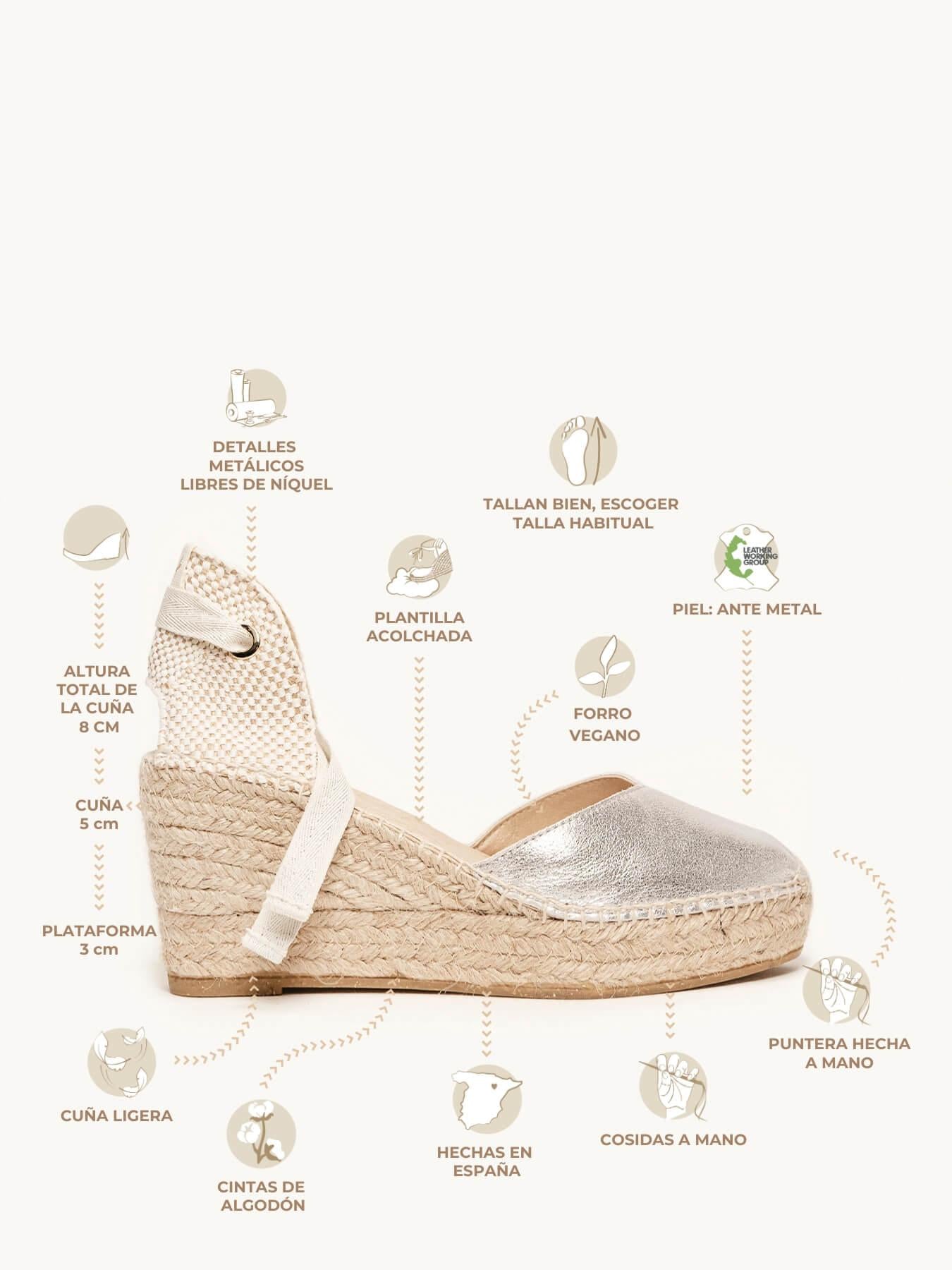 - El Ante Metal de la alpargata Romero está certificado por el Leather Working Group (una organización que promueve prácticas ambientales sostenibles)