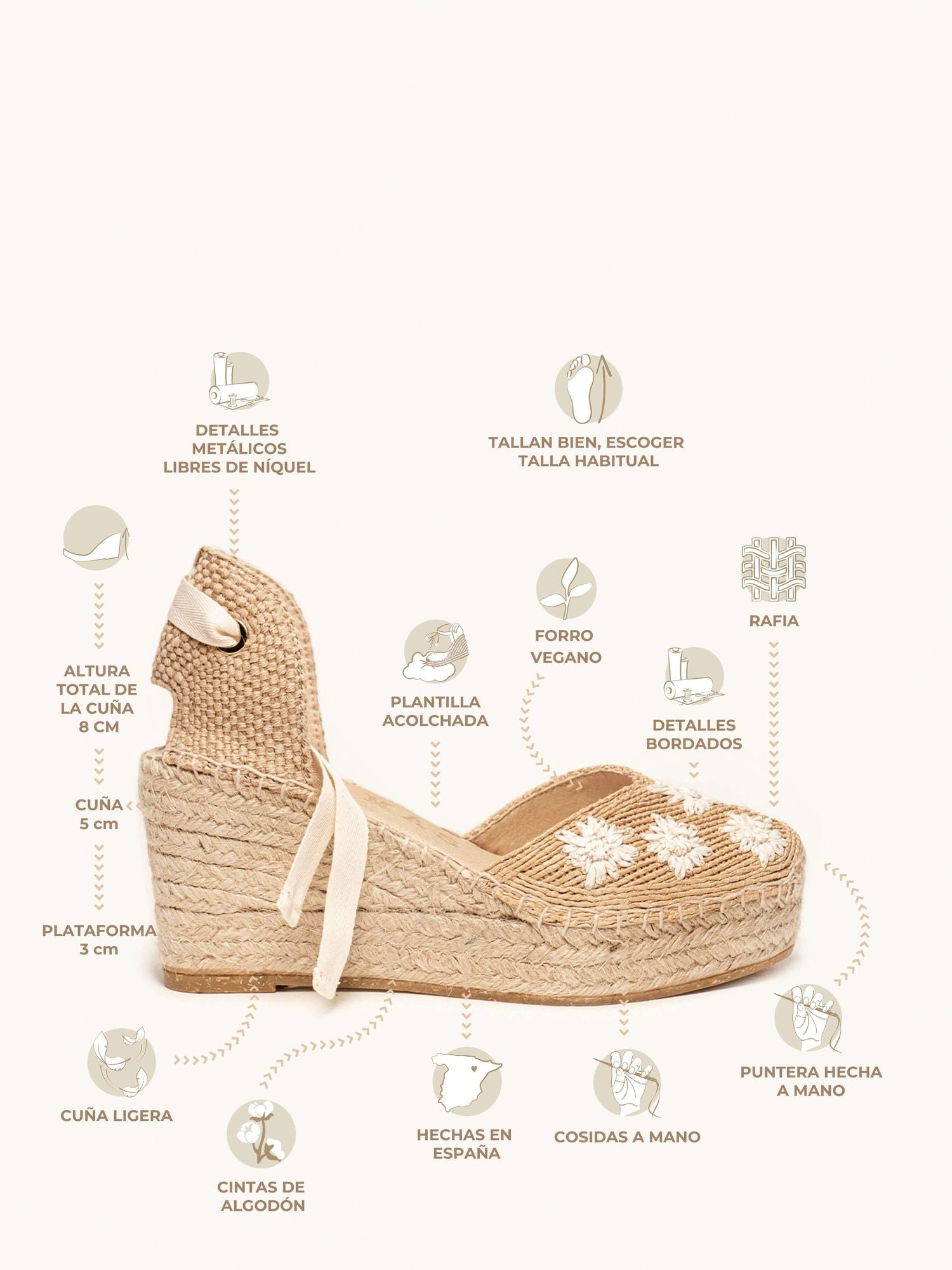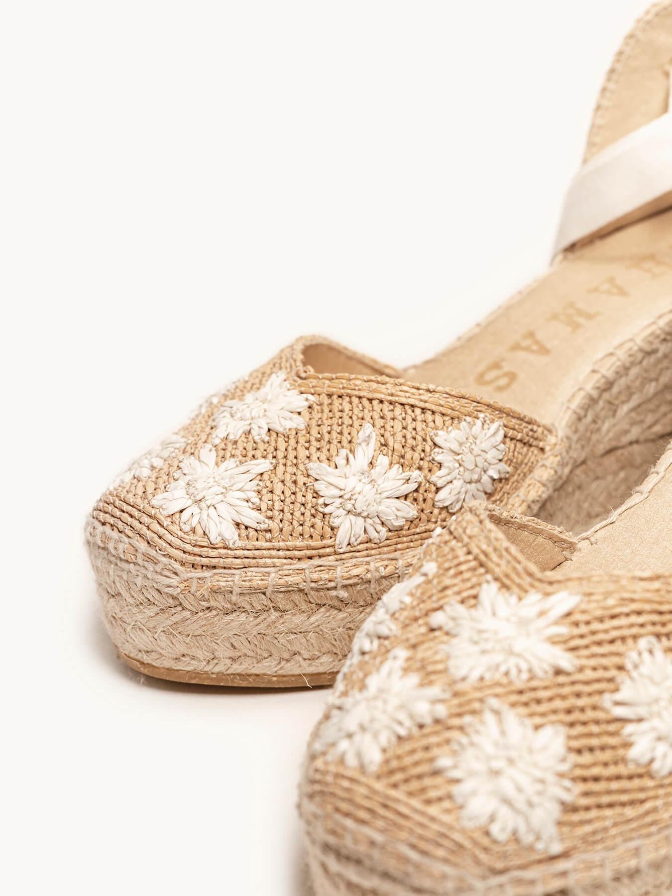Romero Cuña Media Plataforma Rafia Flores Blanco