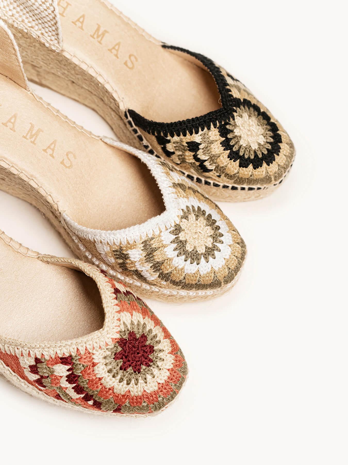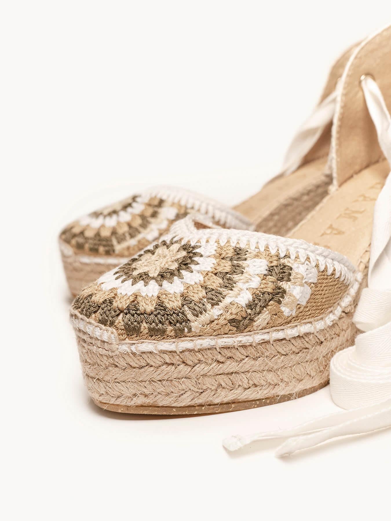 El modelo Romero, es uno de nuestros modelos más tradicionales y románticos. Nuestra alpargata con cintas es un modelo muy versátil, ideal para el día a día y también para darle un toque muy chic a los looks más especiales. Unas alpargatas de crochet con cintas muy especiales ya que podrás atarlas de diversas formas.