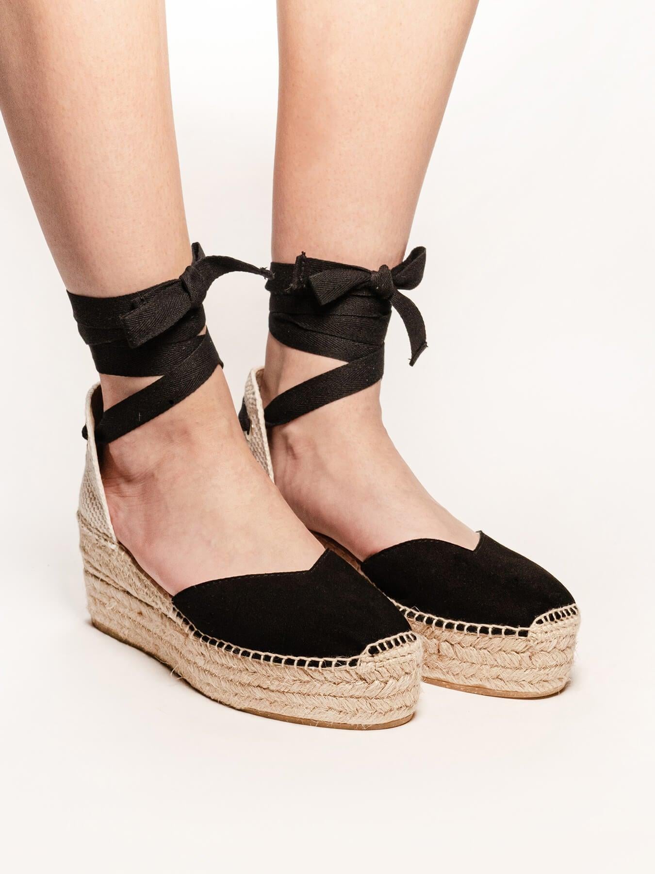 La alpargata de plataforma Romero, es nuestro modelo más icónico. Una alpargata valenciana de escote corazón con cintas que podrás llevar con tus looks especiales y también con los del día a día. Podrás darle un toque especial porque las cintas se pueden cambiar.