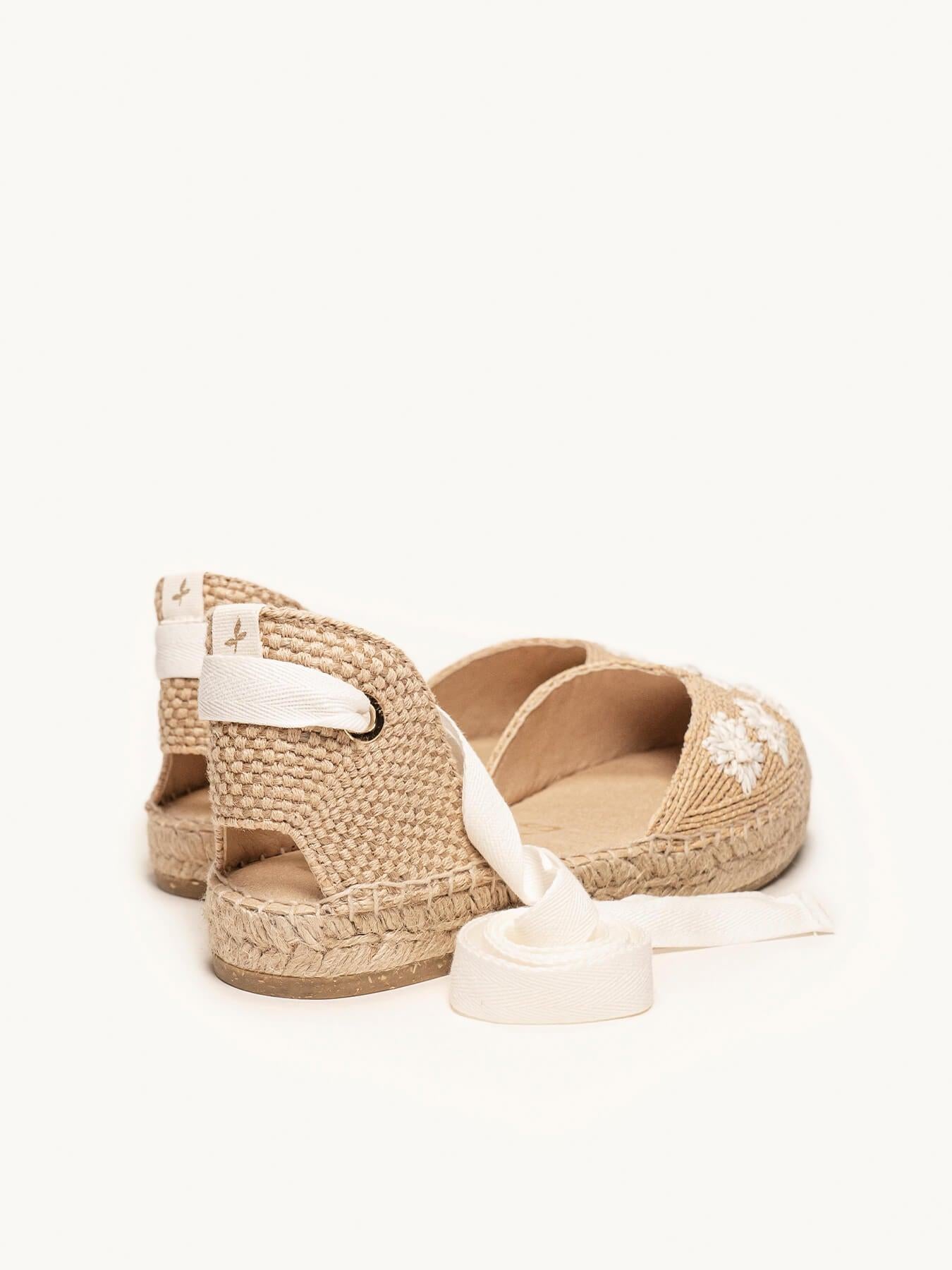 La alpargata plana Romero, es nuestro modelo más icónico. Una alpargata valenciana de escote corazón con cintas que podrás llevar con tus looks especiales y también con los del día a día. Podrás darle un toque especial porque las cintas se pueden cambiar.